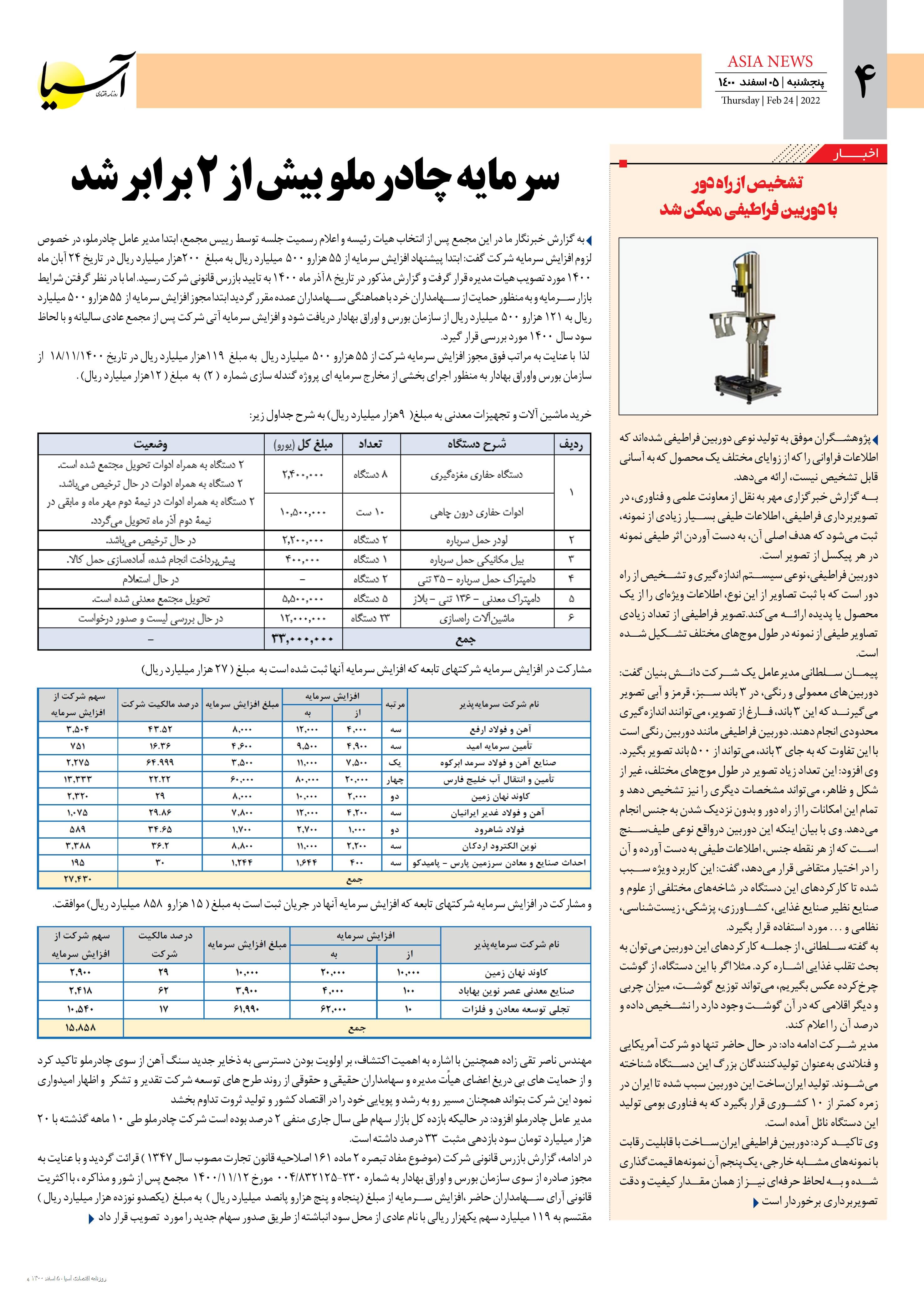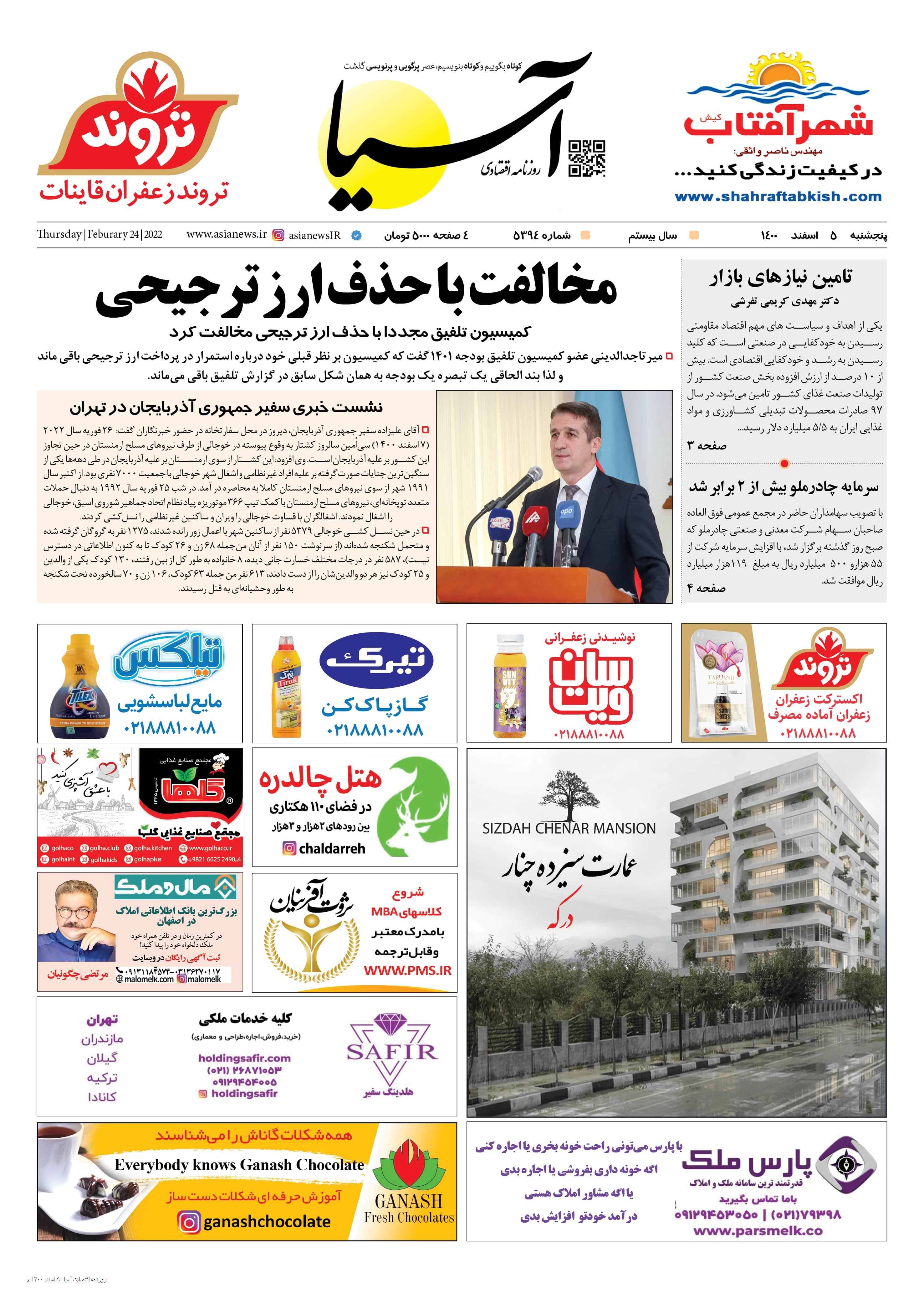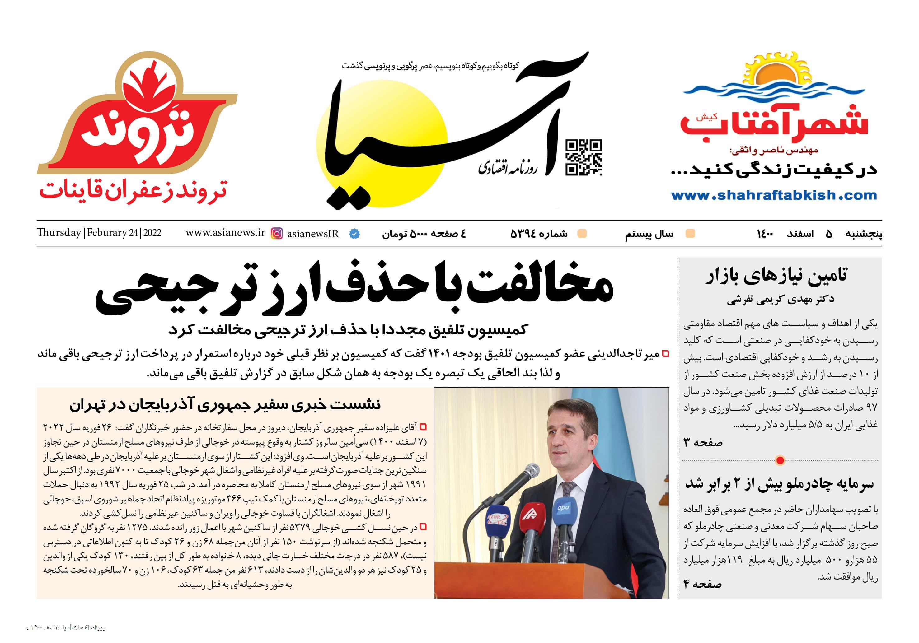 روزنامه اقتصادی آسیا - ۵ اسفند ۱۴۰۰ ۴ اسفند ۱۴۰۰ https://www.asianewsiran.com/u/cne آسیانیوز ایران هیچگونه مسولیتی در قبال نظرات کاربران ندارد. میانگین امتیاز کاربران: 0.0 (0 رای) 12345 امتیاز 12345 برای امتیاز باید عدد وارد کنید ایمیل را وارد کنید ایمیل صحیح نیست ایمیل نمایش داده شود. تعداد کاراکتر باقیمانده: 1000 نظر خود را وارد کنید بازخوانی بازخوانی پس از انتشار این نظر، به من اطلاع داده شود. ارسال توجه : نظرات بیان شده در یادداشتهایی که منتشر میکنیم، بیانگر عقیده نگارنده آن است و لزوماً دیدگاه مدیران وبسایت آسیانیوز و آسیانیوز ایران نمیباشد. سردبیر