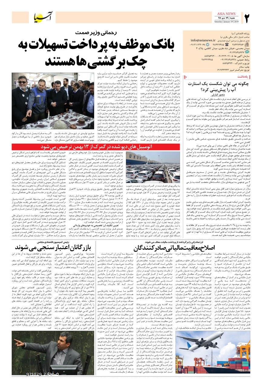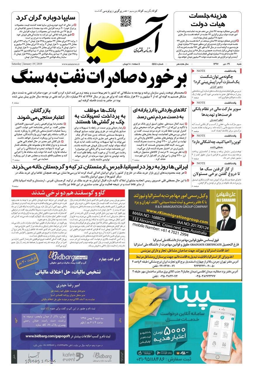 روزنامه اقتصادی آسیا - 29 دی 1397