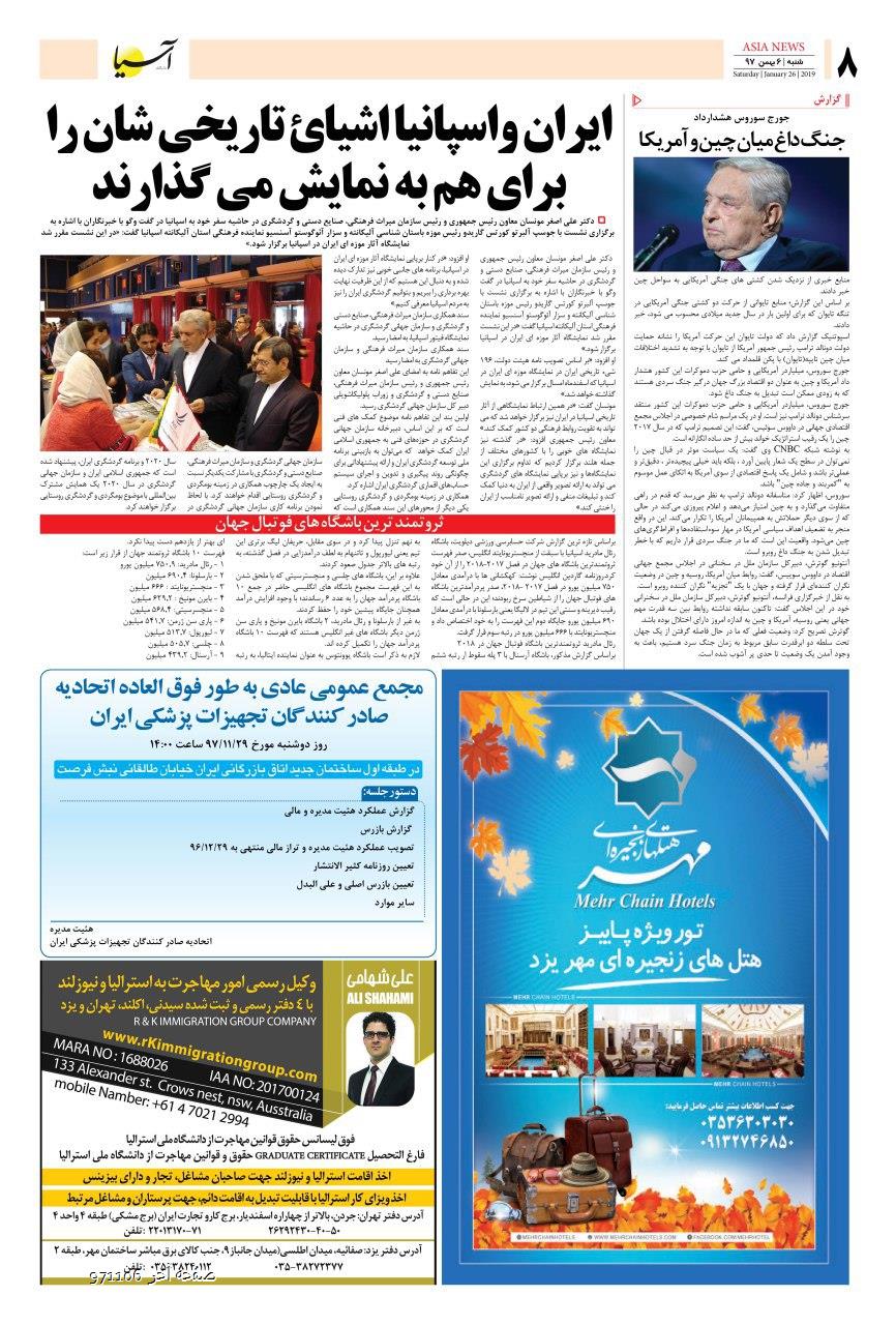 روزنامه اقتصادی آسیا - 06 بهمن 1397 ۶ بهمن ۱۳۹۷ https://www.asianewsiran.com/u/bsj آسیانیوز ایران هیچگونه مسولیتی در قبال نظرات کاربران ندارد. میانگین امتیاز کاربران: 0.0 (0 رای) 12345 امتیاز 12345 برای امتیاز باید عدد وارد کنید ایمیل را وارد کنید ایمیل صحیح نیست ایمیل نمایش داده شود. تعداد کاراکتر باقیمانده: 1000 نظر خود را وارد کنید بازخوانی بازخوانی پس از انتشار این نظر، به من اطلاع داده شود. ارسال توجه : نظرات بیان شده در یادداشتهایی که منتشر میکنیم، بیانگر عقیده نگارنده آن است و لزوماً دیدگاه مدیران وبسایت آسیانیوز و آسیانیوز ایران نمیباشد. سردبیر