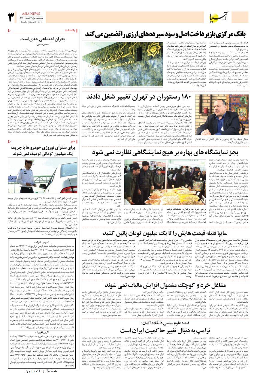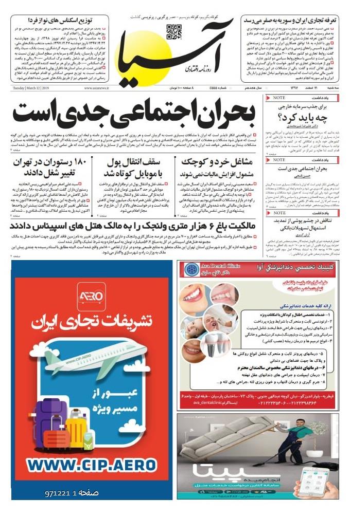 روزنامه اقتصادی آسیا - 21 اسفند 1397 ۲۱ اسفند ۱۳۹۷ https://www.asianewsiran.com/u/cml آسیانیوز ایران هیچگونه مسولیتی در قبال نظرات کاربران ندارد. میانگین امتیاز کاربران: 0.0 (0 رای) 12345 امتیاز 12345 برای امتیاز باید عدد وارد کنید ایمیل را وارد کنید ایمیل صحیح نیست ایمیل نمایش داده شود. تعداد کاراکتر باقیمانده: 1000 نظر خود را وارد کنید بازخوانی بازخوانی پس از انتشار این نظر، به من اطلاع داده شود. ارسال توجه : نظرات بیان شده در یادداشتهایی که منتشر میکنیم، بیانگر عقیده نگارنده آن است و لزوماً دیدگاه مدیران وبسایت آسیانیوز و آسیانیوز ایران نمیباشد. سردبیر