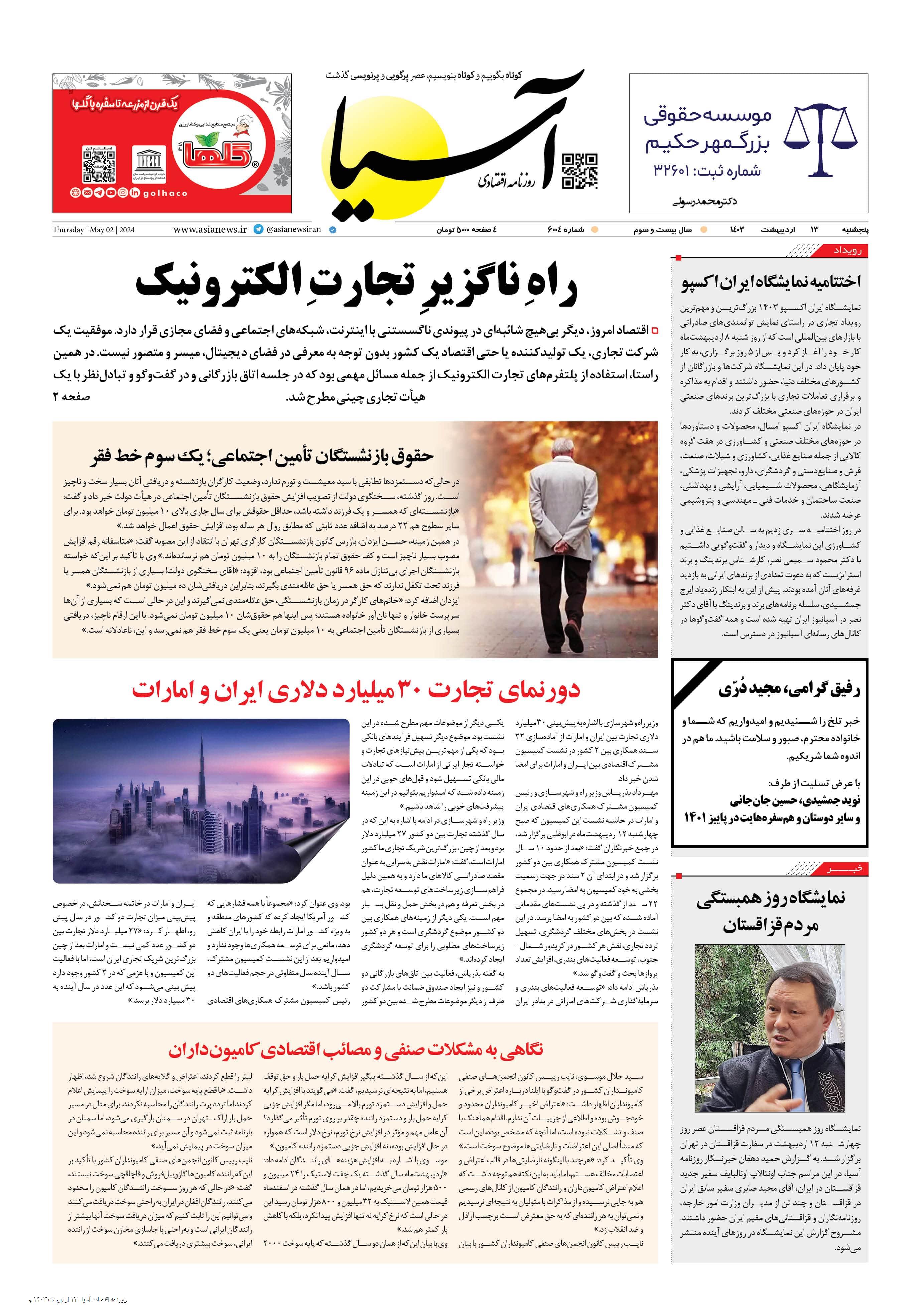 روزنامه اقتصادی آسیا - ۱۳ اردیبهشت ۱۴۰۳ ۱۲ اردیبهشت ۱۴۰۳ https://www.asianewsiran.com/u/esr آسیانیوز ایران هیچگونه مسولیتی در قبال نظرات کاربران ندارد. میانگین امتیاز کاربران: 0.0 (0 رای) 12345 امتیاز 12345 برای امتیاز باید عدد وارد کنید ایمیل را وارد کنید ایمیل صحیح نیست ایمیل نمایش داده شود. تعداد کاراکتر باقیمانده: 1000 نظر خود را وارد کنید بازخوانی بازخوانی پس از انتشار این نظر، به من اطلاع داده شود. ارسال توجه : نظرات بیان شده در یادداشتهایی که منتشر میکنیم، بیانگر عقیده نگارنده آن است و لزوماً دیدگاه مدیران وبسایت آسیانیوز و آسیانیوز ایران نمیباشد. سردبیر