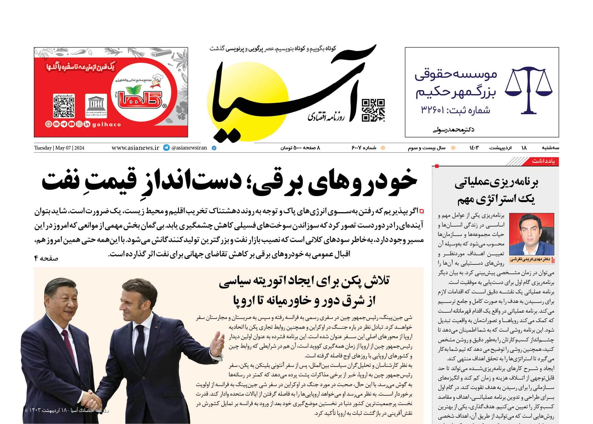 روزنامه اقتصادی آسیا - ۱۸ اردیبهشت ۱۴۰۳ ۱۷ اردیبهشت ۱۴۰۳ https://www.asianewsiran.com/u/eu9 آسیانیوز ایران هیچگونه مسولیتی در قبال نظرات کاربران ندارد. میانگین امتیاز کاربران: 0.0 (0 رای) 12345 امتیاز 12345 برای امتیاز باید عدد وارد کنید ایمیل را وارد کنید ایمیل صحیح نیست ایمیل نمایش داده شود. تعداد کاراکتر باقیمانده: 1000 نظر خود را وارد کنید بازخوانی بازخوانی پس از انتشار این نظر، به من اطلاع داده شود. ارسال توجه : نظرات بیان شده در یادداشتهایی که منتشر میکنیم، بیانگر عقیده نگارنده آن است و لزوماً دیدگاه مدیران وبسایت آسیانیوز و آسیانیوز ایران نمیباشد. سردبیر