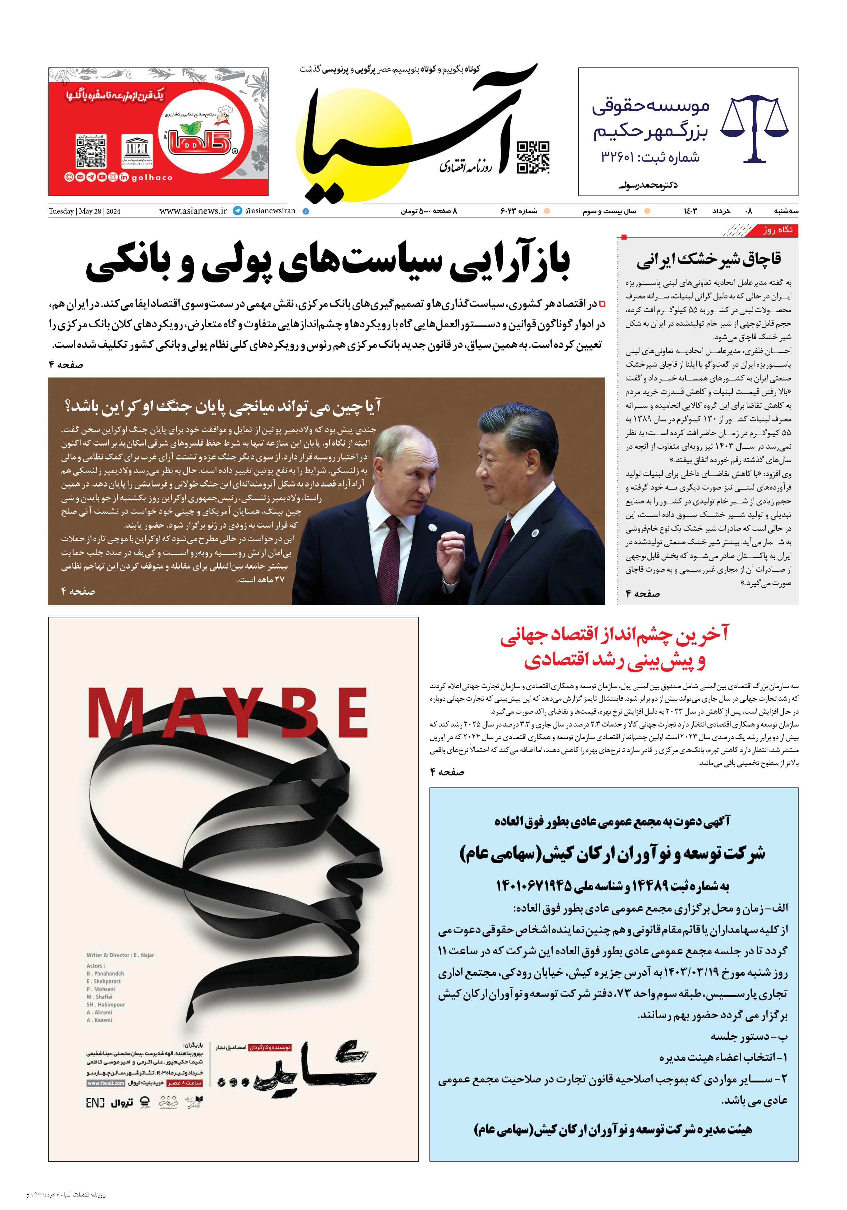 روزنامه اقتصادی آسیا - ۸ خرداد ۱۴۰۳ ۷ خرداد ۱۴۰۳ https://www.asianewsiran.com/u/eBZ آسیانیوز ایران هیچگونه مسولیتی در قبال نظرات کاربران ندارد. میانگین امتیاز کاربران: 0.0 (0 رای) 12345 امتیاز 12345 برای امتیاز باید عدد وارد کنید ایمیل را وارد کنید ایمیل صحیح نیست ایمیل نمایش داده شود. تعداد کاراکتر باقیمانده: 1000 نظر خود را وارد کنید بازخوانی بازخوانی پس از انتشار این نظر، به من اطلاع داده شود. ارسال توجه : نظرات بیان شده در یادداشتهایی که منتشر میکنیم، بیانگر عقیده نگارنده آن است و لزوماً دیدگاه مدیران وبسایت آسیانیوز و آسیانیوز ایران نمیباشد. سردبیر