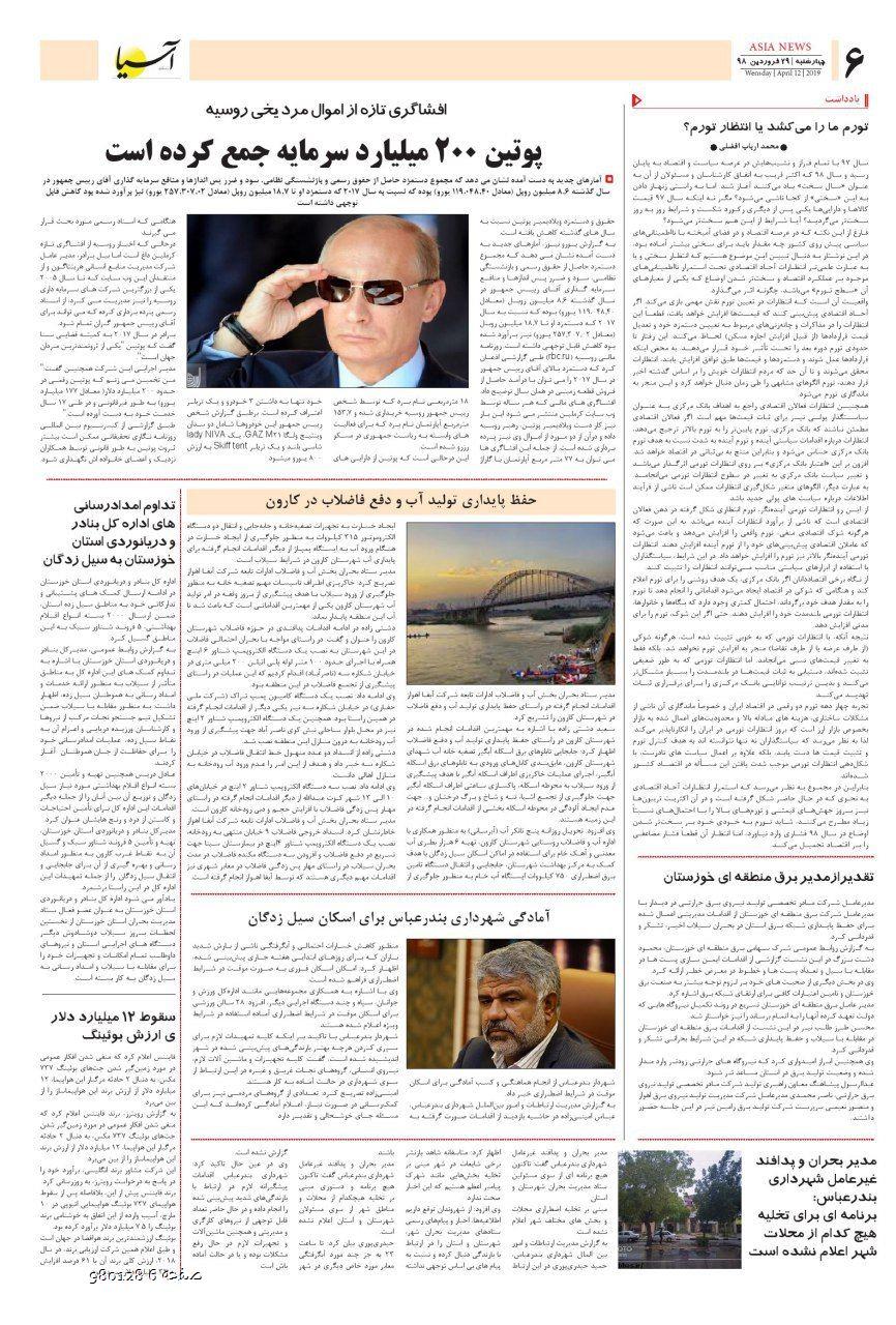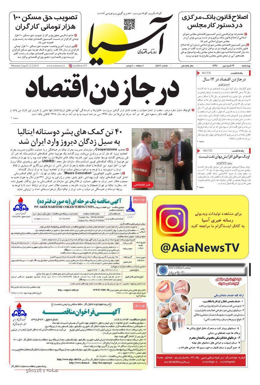 روزنامه اقتصادی آسیا - 28 فروردین 1398 ۲۸ فروردین ۱۳۹۸ https://www.asianewsiran.com/u/ce4 آسیانیوز ایران هیچگونه مسولیتی در قبال نظرات کاربران ندارد. میانگین امتیاز کاربران: 0.0 (0 رای) 12345 امتیاز 12345 برای امتیاز باید عدد وارد کنید ایمیل را وارد کنید ایمیل صحیح نیست ایمیل نمایش داده شود. تعداد کاراکتر باقیمانده: 1000 نظر خود را وارد کنید بازخوانی بازخوانی پس از انتشار این نظر، به من اطلاع داده شود. ارسال توجه : نظرات بیان شده در یادداشتهایی که منتشر میکنیم، بیانگر عقیده نگارنده آن است و لزوماً دیدگاه مدیران وبسایت آسیانیوز و آسیانیوز ایران نمیباشد. سردبیر