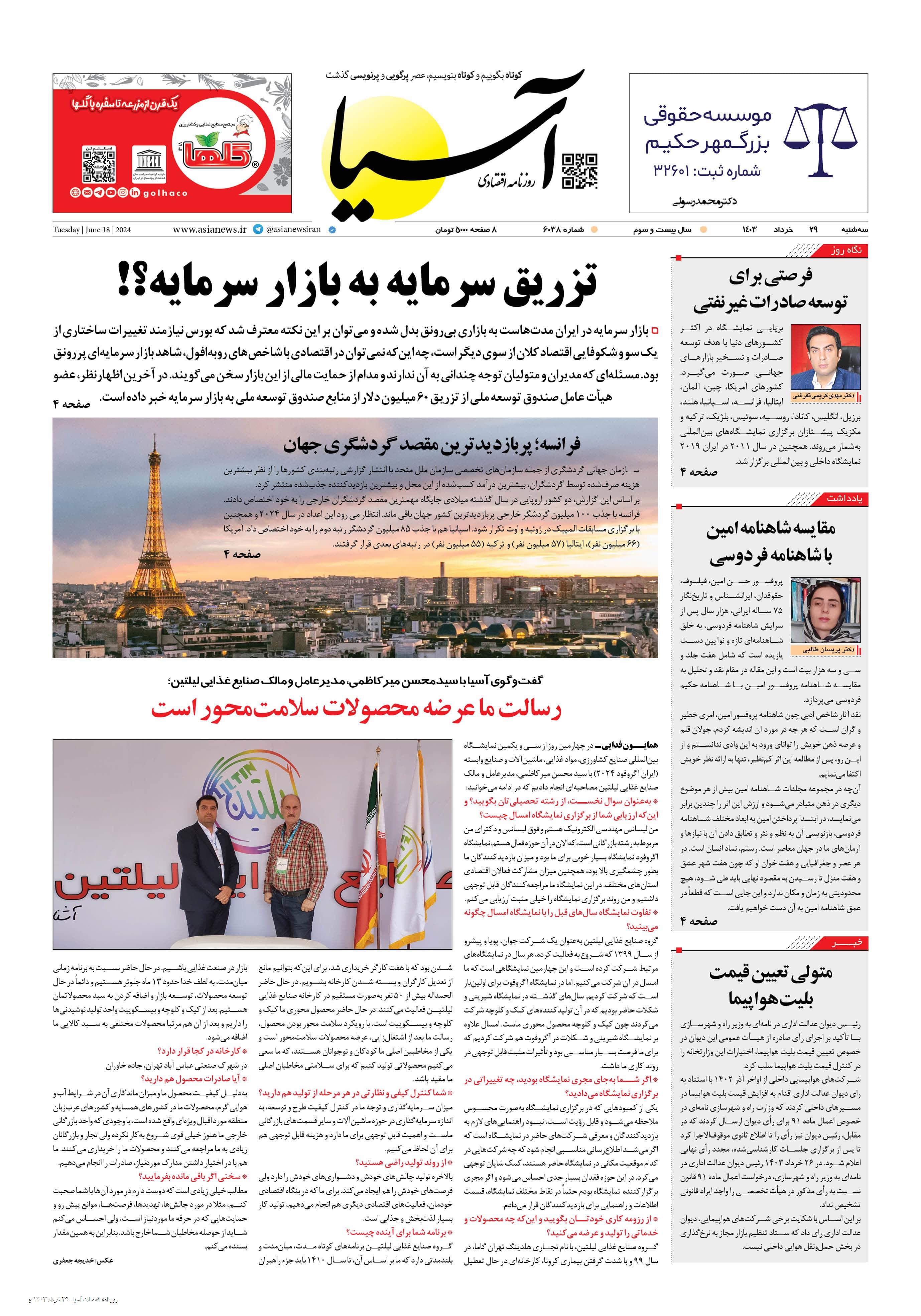 روزنامه اقتصادی آسیا - ۲۹ خرداد ۱۴۰۳ ۲۸ خرداد ۱۴۰۳ https://www.asianewsiran.com/u/eJC آسیانیوز ایران هیچگونه مسولیتی در قبال نظرات کاربران ندارد. میانگین امتیاز کاربران: 0.0 (0 رای) 12345 امتیاز 12345 برای امتیاز باید عدد وارد کنید ایمیل را وارد کنید ایمیل صحیح نیست ایمیل نمایش داده شود. تعداد کاراکتر باقیمانده: 1000 نظر خود را وارد کنید بازخوانی بازخوانی پس از انتشار این نظر، به من اطلاع داده شود. ارسال توجه : نظرات بیان شده در یادداشتهایی که منتشر میکنیم، بیانگر عقیده نگارنده آن است و لزوماً دیدگاه مدیران وبسایت آسیانیوز و آسیانیوز ایران نمیباشد. سردبیر