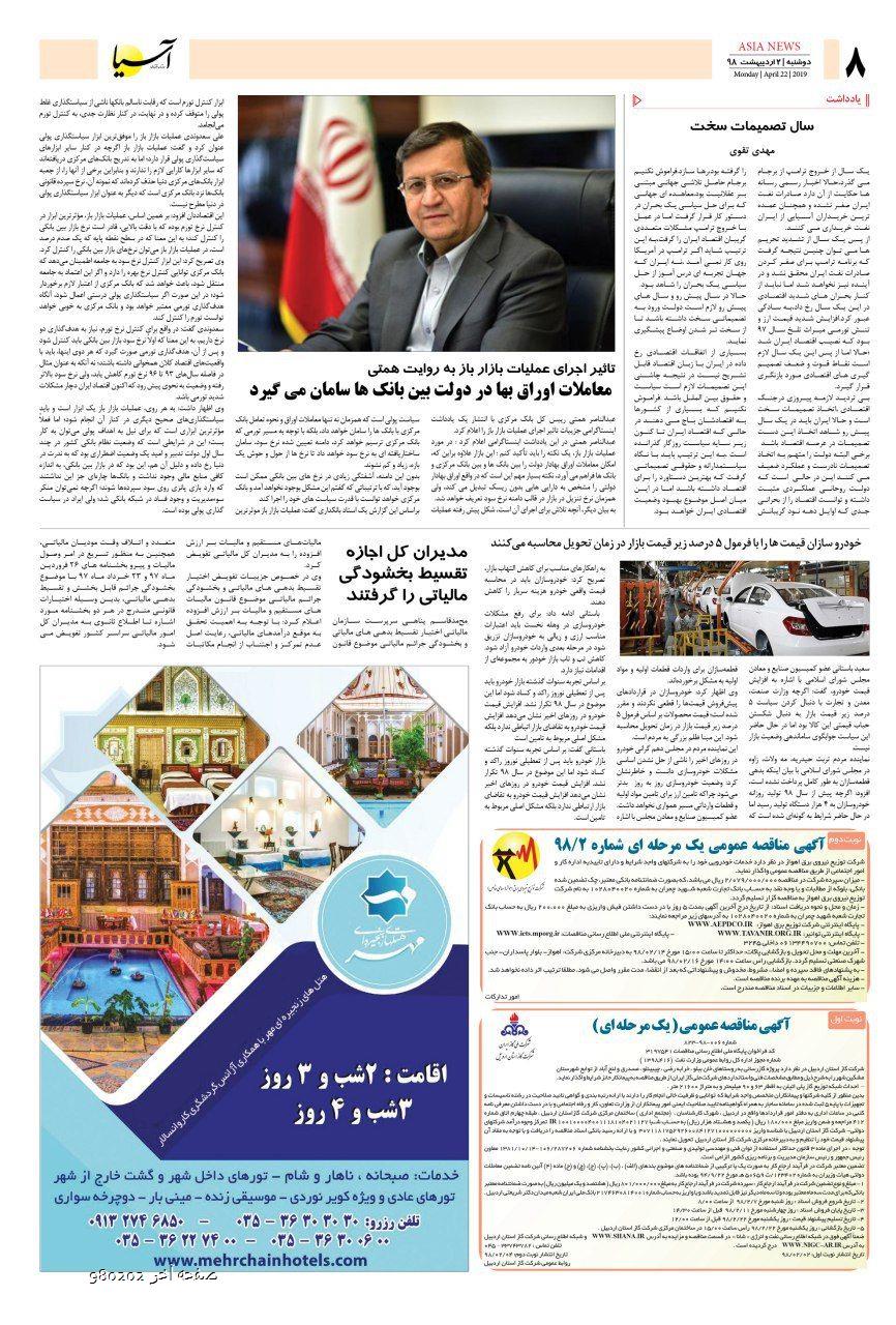 روزنامه اقتصادی آسیا - 02 اردیبهشت 1398 ۲ اردیبهشت ۱۳۹۸ https://www.asianewsiran.com/u/c5z آسیانیوز ایران هیچگونه مسولیتی در قبال نظرات کاربران ندارد. میانگین امتیاز کاربران: 0.0 (0 رای) 12345 امتیاز 12345 برای امتیاز باید عدد وارد کنید ایمیل را وارد کنید ایمیل صحیح نیست ایمیل نمایش داده شود. تعداد کاراکتر باقیمانده: 1000 نظر خود را وارد کنید بازخوانی بازخوانی پس از انتشار این نظر، به من اطلاع داده شود. ارسال توجه : نظرات بیان شده در یادداشتهایی که منتشر میکنیم، بیانگر عقیده نگارنده آن است و لزوماً دیدگاه مدیران وبسایت آسیانیوز و آسیانیوز ایران نمیباشد. سردبیر