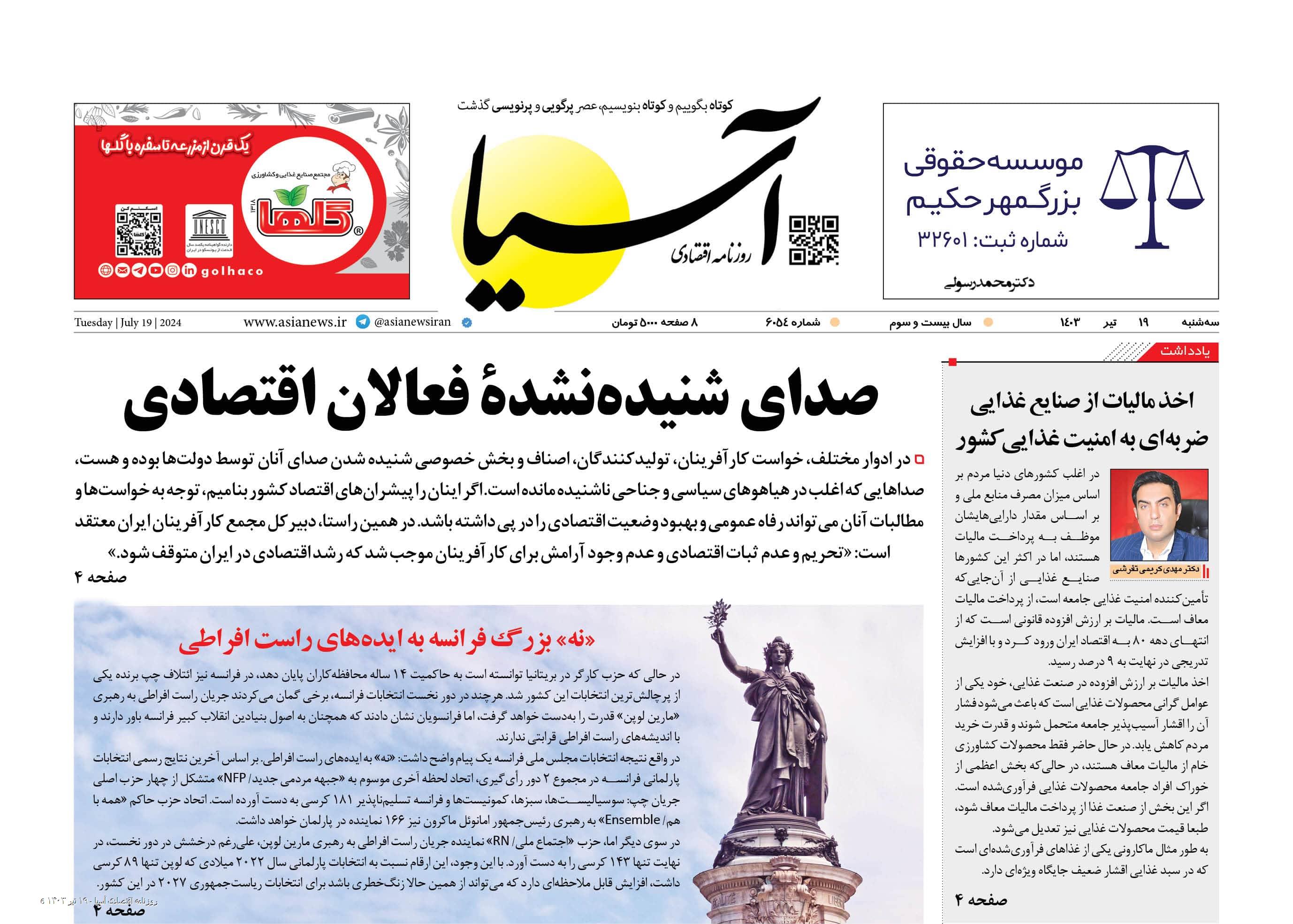 روزنامه اقتصادی آسیا - ۱۹ تیر ۱۴۰۳ ۱۸ تیر ۱۴۰۳ https://www.asianewsiran.com/u/eRh آسیانیوز ایران هیچگونه مسولیتی در قبال نظرات کاربران ندارد. میانگین امتیاز کاربران: 0.0 (0 رای) 12345 امتیاز 12345 برای امتیاز باید عدد وارد کنید ایمیل را وارد کنید ایمیل صحیح نیست ایمیل نمایش داده شود. تعداد کاراکتر باقیمانده: 1000 نظر خود را وارد کنید بازخوانی بازخوانی پس از انتشار این نظر، به من اطلاع داده شود. ارسال توجه : نظرات بیان شده در یادداشتهایی که منتشر میکنیم، بیانگر عقیده نگارنده آن است و لزوماً دیدگاه مدیران وبسایت آسیانیوز و آسیانیوز ایران نمیباشد. سردبیر