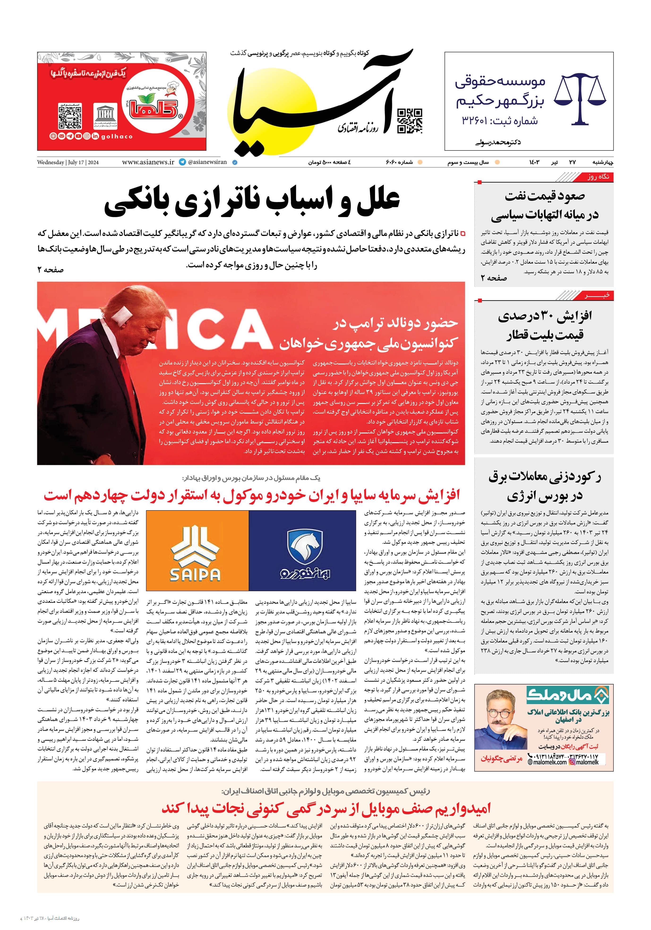 روزنامه اقتصادی آسیا - ۲۷ تیر ۱۴۰۳ ۲۷ تیر ۱۴۰۳ https://www.asianewsiran.com/u/eTS آسیانیوز ایران هیچگونه مسولیتی در قبال نظرات کاربران ندارد. میانگین امتیاز کاربران: 0.0 (0 رای) 12345 امتیاز 12345 برای امتیاز باید عدد وارد کنید ایمیل را وارد کنید ایمیل صحیح نیست ایمیل نمایش داده شود. تعداد کاراکتر باقیمانده: 1000 نظر خود را وارد کنید بازخوانی بازخوانی پس از انتشار این نظر، به من اطلاع داده شود. ارسال توجه : نظرات بیان شده در یادداشتهایی که منتشر میکنیم، بیانگر عقیده نگارنده آن است و لزوماً دیدگاه مدیران وبسایت آسیانیوز و آسیانیوز ایران نمیباشد. سردبیر