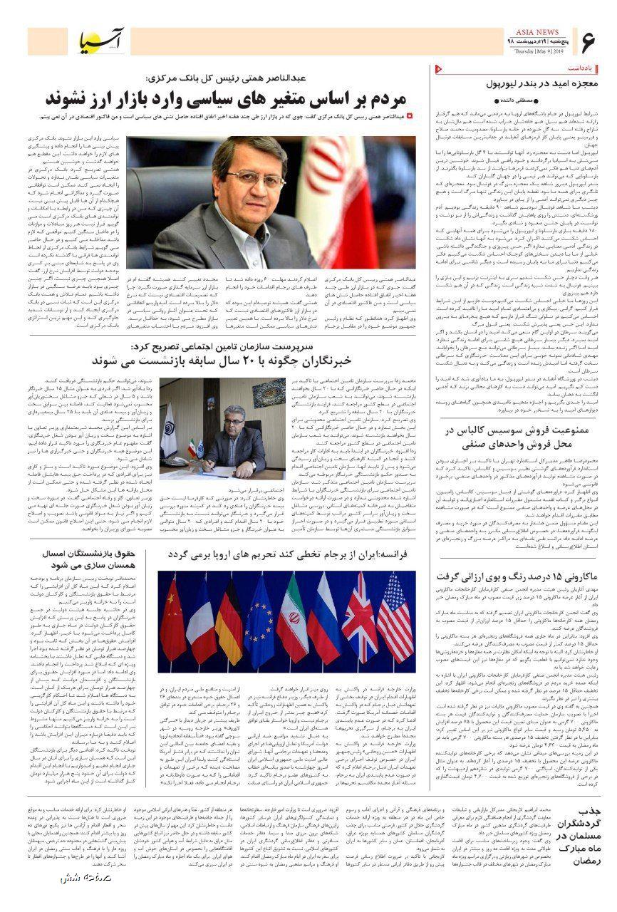 روزنامه اقتصادی آسیا- 19 اردیبهشت 1398 ۱۸ اردیبهشت ۱۳۹۸ https://www.asianewsiran.com/u/coj آسیانیوز ایران هیچگونه مسولیتی در قبال نظرات کاربران ندارد. میانگین امتیاز کاربران: 0.0 (0 رای) 12345 امتیاز 12345 برای امتیاز باید عدد وارد کنید ایمیل را وارد کنید ایمیل صحیح نیست ایمیل نمایش داده شود. تعداد کاراکتر باقیمانده: 1000 نظر خود را وارد کنید بازخوانی بازخوانی پس از انتشار این نظر، به من اطلاع داده شود. ارسال توجه : نظرات بیان شده در یادداشتهایی که منتشر میکنیم، بیانگر عقیده نگارنده آن است و لزوماً دیدگاه مدیران وبسایت آسیانیوز و آسیانیوز ایران نمیباشد. سردبیر
