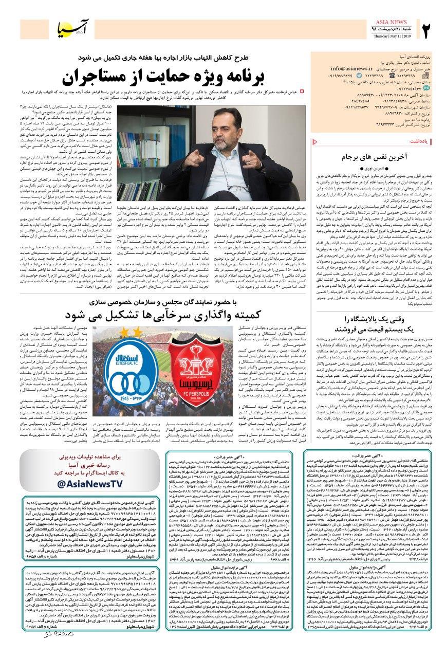 روزنامه اقتصادی آسیا- 21 اردیبهشت 1398