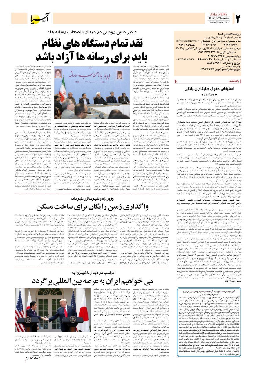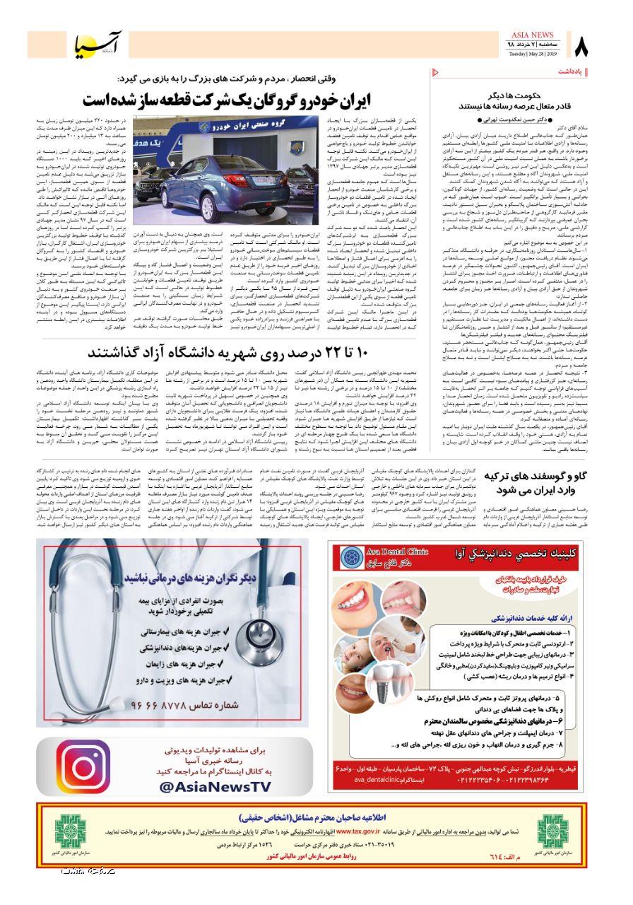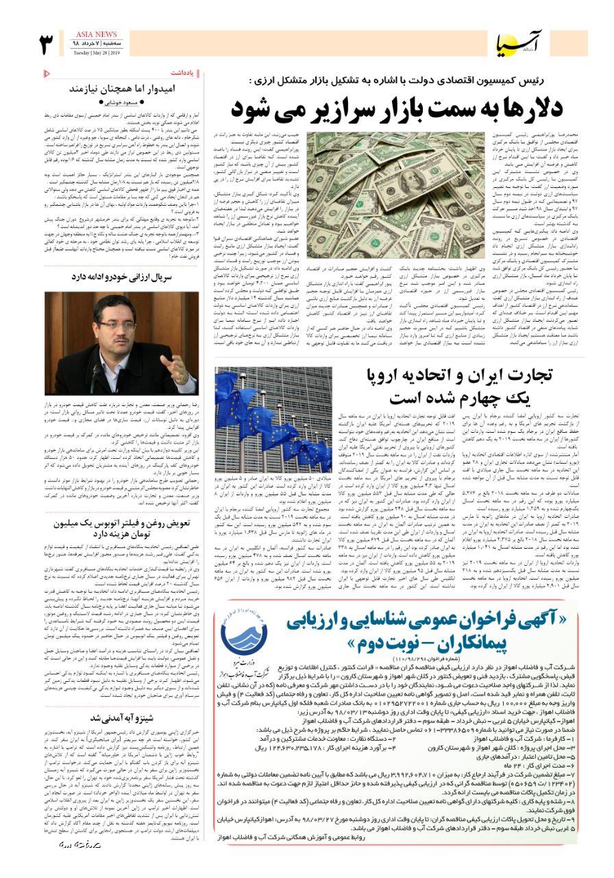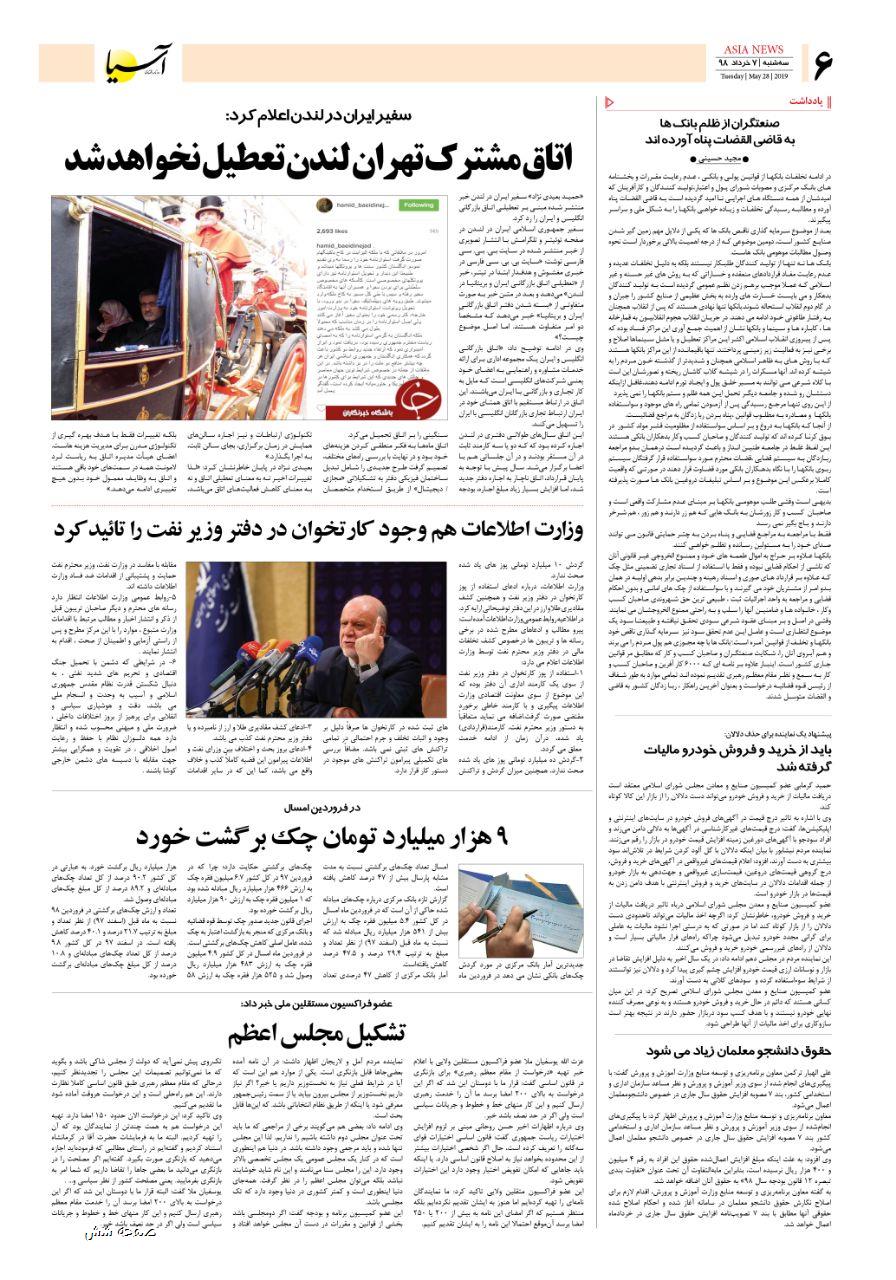 روزنامه اقتصادی آسیا- 07خرداد 1398 ۶ خرداد ۱۳۹۸ https://www.asianewsiran.com/u/c10 آسیانیوز ایران هیچگونه مسولیتی در قبال نظرات کاربران ندارد. میانگین امتیاز کاربران: 0.0 (0 رای) 12345 امتیاز 12345 برای امتیاز باید عدد وارد کنید ایمیل را وارد کنید ایمیل صحیح نیست ایمیل نمایش داده شود. تعداد کاراکتر باقیمانده: 1000 نظر خود را وارد کنید بازخوانی بازخوانی پس از انتشار این نظر، به من اطلاع داده شود. ارسال توجه : نظرات بیان شده در یادداشتهایی که منتشر میکنیم، بیانگر عقیده نگارنده آن است و لزوماً دیدگاه مدیران وبسایت آسیانیوز و آسیانیوز ایران نمیباشد. سردبیر