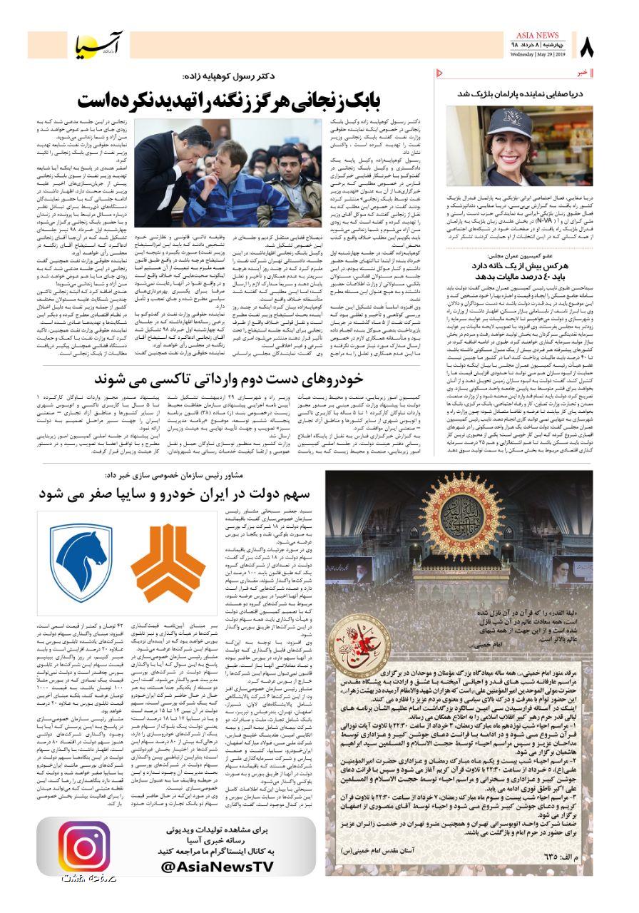 روزنامه اقتصادی آسیا- 08خرداد 1398 ۷ خرداد ۱۳۹۸ https://www.asianewsiran.com/u/cc6 آسیانیوز ایران هیچگونه مسولیتی در قبال نظرات کاربران ندارد. میانگین امتیاز کاربران: 0.0 (0 رای) 12345 امتیاز 12345 برای امتیاز باید عدد وارد کنید ایمیل را وارد کنید ایمیل صحیح نیست ایمیل نمایش داده شود. تعداد کاراکتر باقیمانده: 1000 نظر خود را وارد کنید بازخوانی بازخوانی پس از انتشار این نظر، به من اطلاع داده شود. ارسال توجه : نظرات بیان شده در یادداشتهایی که منتشر میکنیم، بیانگر عقیده نگارنده آن است و لزوماً دیدگاه مدیران وبسایت آسیانیوز و آسیانیوز ایران نمیباشد. سردبیر