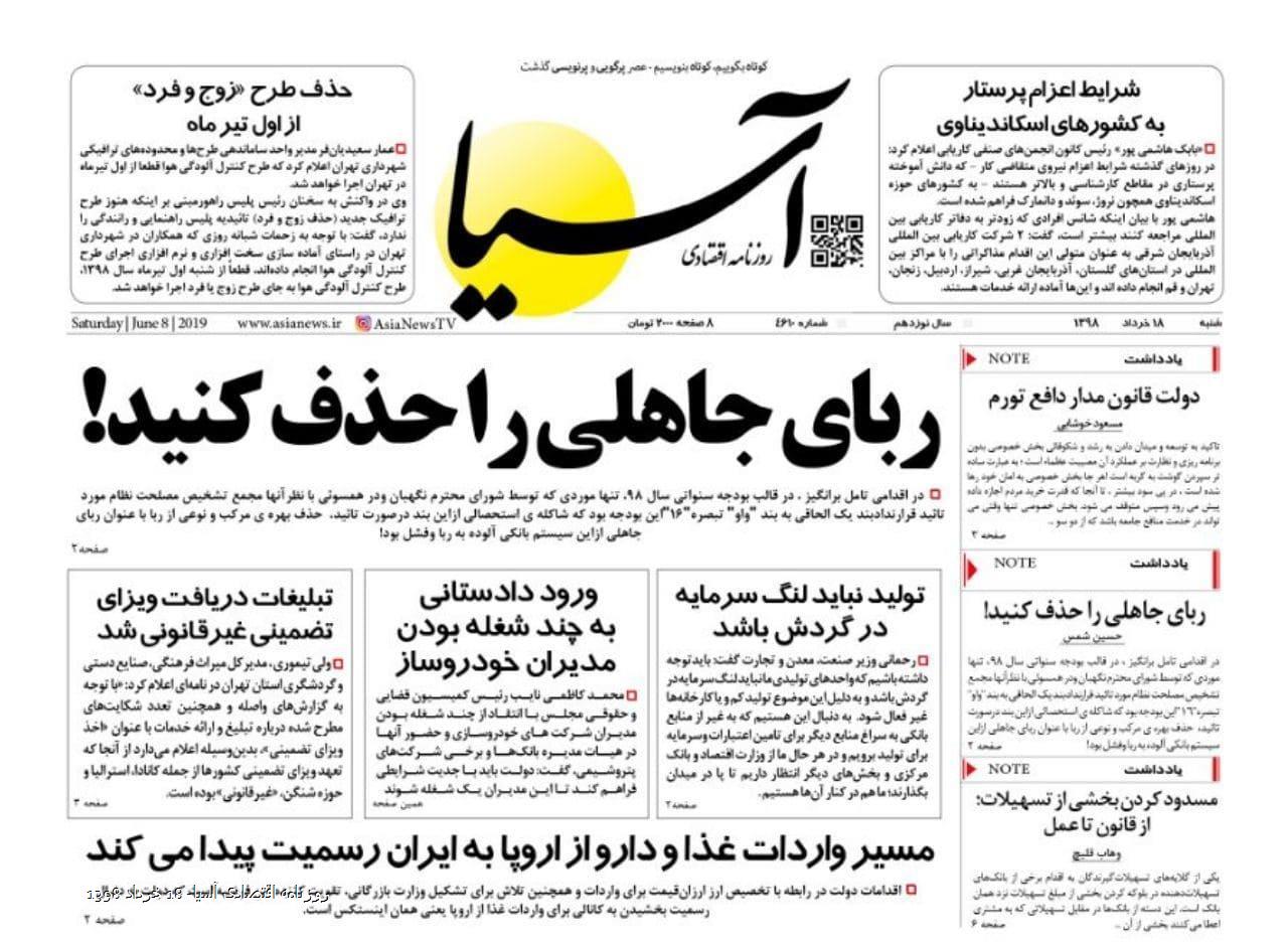 روزنامه اقتصادی آسیا- 18خرداد 1398 ۱۷ خرداد ۱۳۹۸ https://www.asianewsiran.com/u/c5m آسیانیوز ایران هیچگونه مسولیتی در قبال نظرات کاربران ندارد. میانگین امتیاز کاربران: 0.0 (0 رای) 12345 امتیاز 12345 برای امتیاز باید عدد وارد کنید ایمیل را وارد کنید ایمیل صحیح نیست ایمیل نمایش داده شود. تعداد کاراکتر باقیمانده: 1000 نظر خود را وارد کنید بازخوانی بازخوانی پس از انتشار این نظر، به من اطلاع داده شود. ارسال توجه : نظرات بیان شده در یادداشتهایی که منتشر میکنیم، بیانگر عقیده نگارنده آن است و لزوماً دیدگاه مدیران وبسایت آسیانیوز و آسیانیوز ایران نمیباشد. سردبیر
