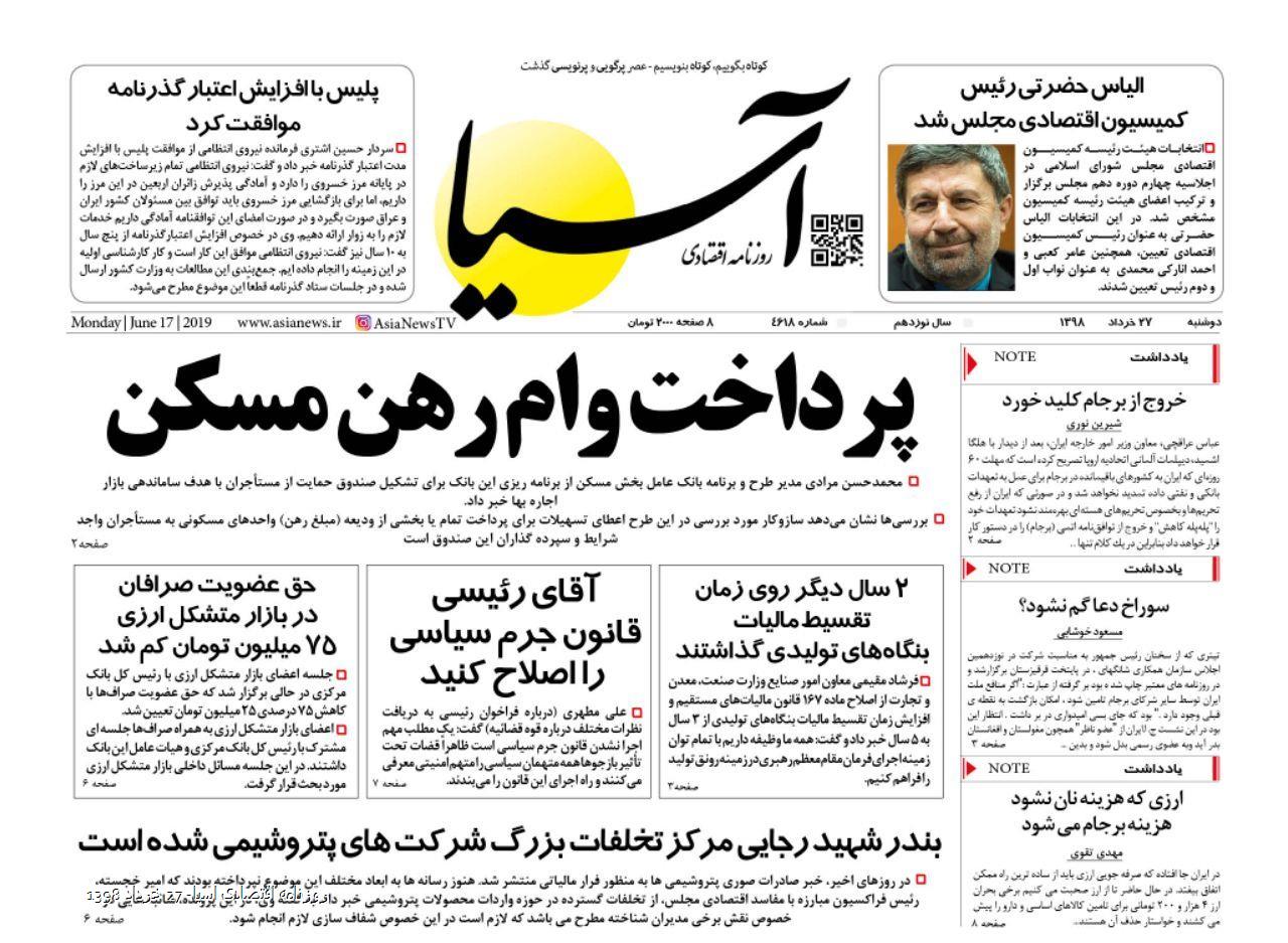 روزنامه اقتصادی آسیا- 27خرداد 1398