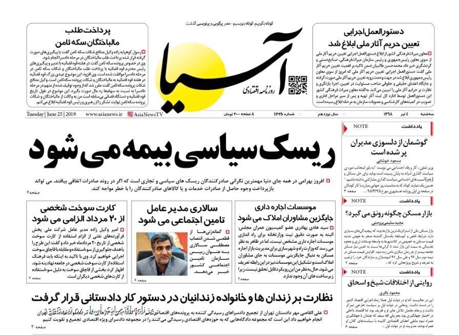 روزنامه اقتصادی آسیا- 04 تیر 1398 ۳ تیر ۱۳۹۸ https://www.asianewsiran.com/u/cmi آسیانیوز ایران هیچگونه مسولیتی در قبال نظرات کاربران ندارد. میانگین امتیاز کاربران: 0.0 (0 رای) 12345 امتیاز 12345 برای امتیاز باید عدد وارد کنید ایمیل را وارد کنید ایمیل صحیح نیست ایمیل نمایش داده شود. تعداد کاراکتر باقیمانده: 1000 نظر خود را وارد کنید بازخوانی بازخوانی پس از انتشار این نظر، به من اطلاع داده شود. ارسال توجه : نظرات بیان شده در یادداشتهایی که منتشر میکنیم، بیانگر عقیده نگارنده آن است و لزوماً دیدگاه مدیران وبسایت آسیانیوز و آسیانیوز ایران نمیباشد. سردبیر