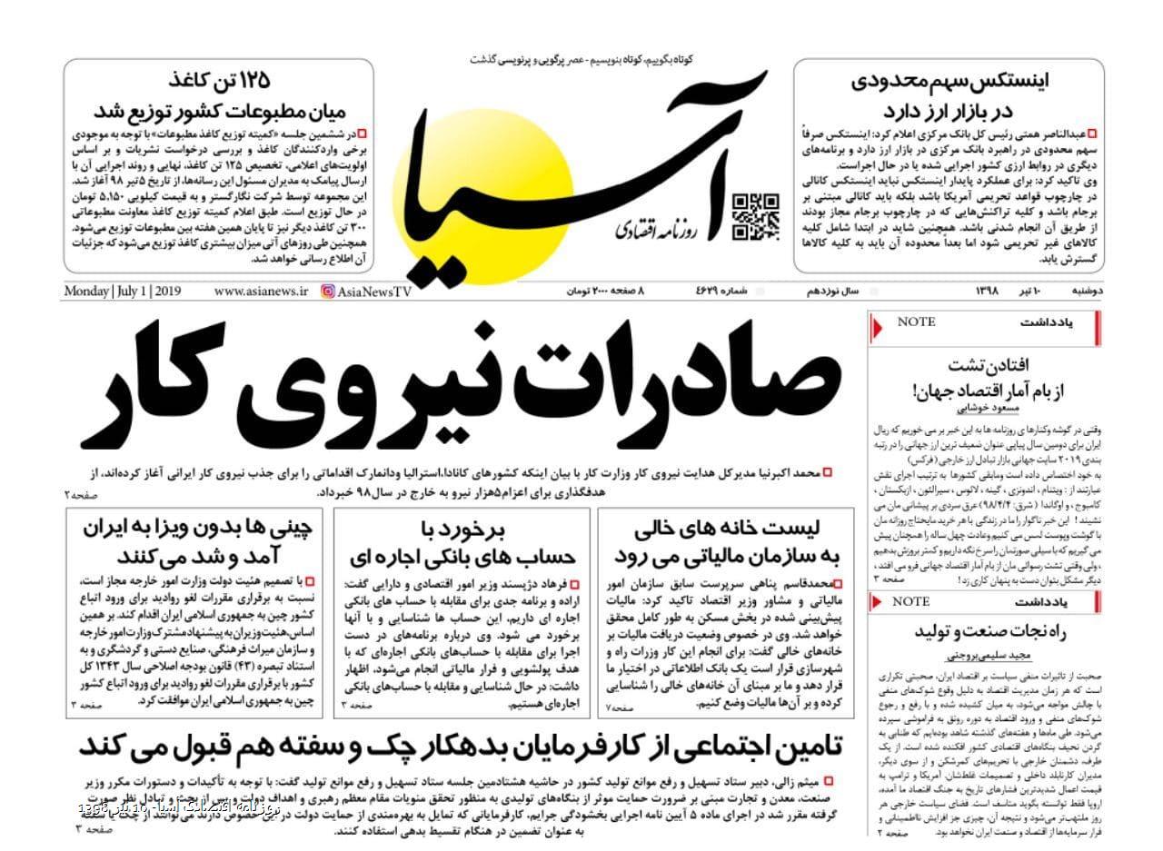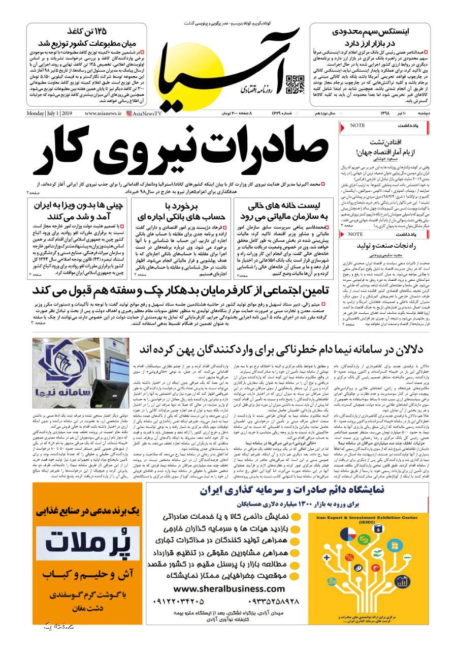 روزنامه اقتصادی آسیا- 10 تیر 1398 ۹ تیر ۱۳۹۸ https://www.asianewsiran.com/u/bqa آسیانیوز ایران هیچگونه مسولیتی در قبال نظرات کاربران ندارد. میانگین امتیاز کاربران: 0.0 (0 رای) 12345 امتیاز 12345 برای امتیاز باید عدد وارد کنید ایمیل را وارد کنید ایمیل صحیح نیست ایمیل نمایش داده شود. تعداد کاراکتر باقیمانده: 1000 نظر خود را وارد کنید بازخوانی بازخوانی پس از انتشار این نظر، به من اطلاع داده شود. ارسال توجه : نظرات بیان شده در یادداشتهایی که منتشر میکنیم، بیانگر عقیده نگارنده آن است و لزوماً دیدگاه مدیران وبسایت آسیانیوز و آسیانیوز ایران نمیباشد. سردبیر