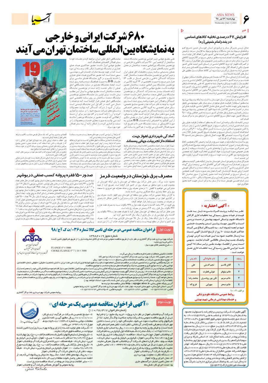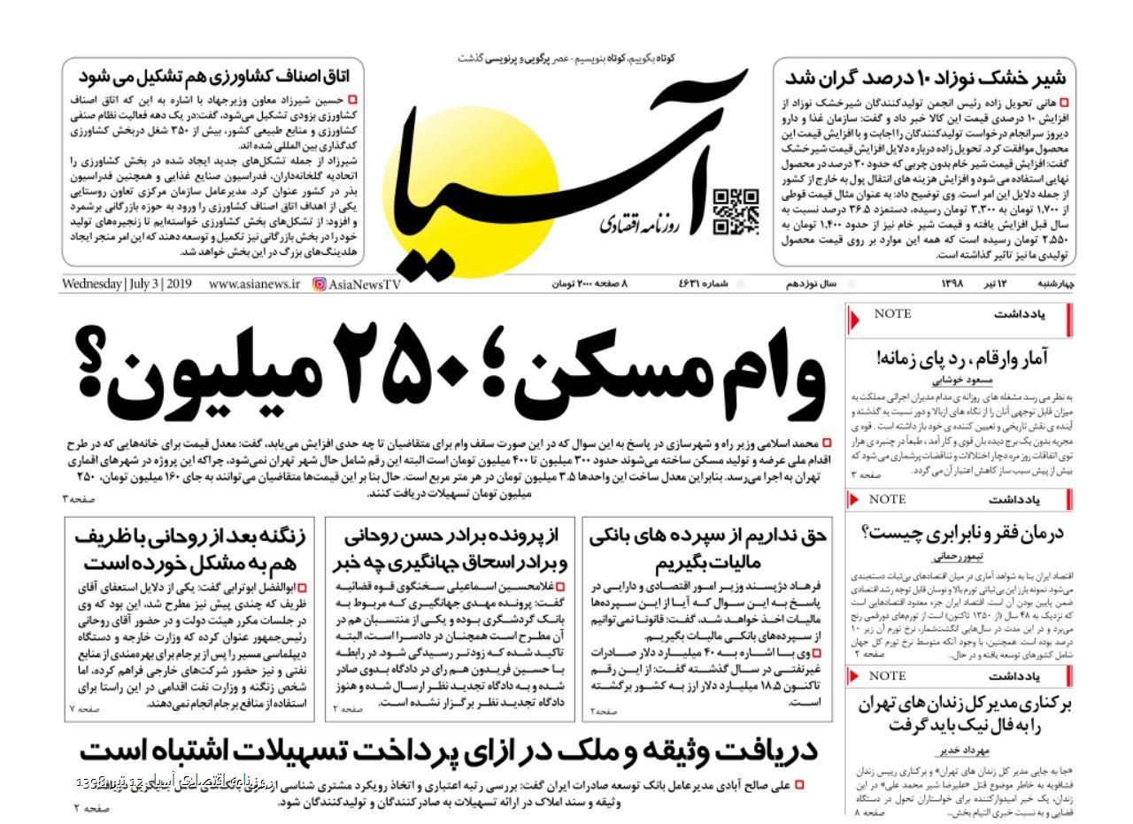 روزنامه اقتصادی آسیا- 12 تیر 1398 ۱۱ تیر ۱۳۹۸ https://www.asianewsiran.com/u/c3x آسیانیوز ایران هیچگونه مسولیتی در قبال نظرات کاربران ندارد. میانگین امتیاز کاربران: 0.0 (0 رای) 12345 امتیاز 12345 برای امتیاز باید عدد وارد کنید ایمیل را وارد کنید ایمیل صحیح نیست ایمیل نمایش داده شود. تعداد کاراکتر باقیمانده: 1000 نظر خود را وارد کنید بازخوانی بازخوانی پس از انتشار این نظر، به من اطلاع داده شود. ارسال توجه : نظرات بیان شده در یادداشتهایی که منتشر میکنیم، بیانگر عقیده نگارنده آن است و لزوماً دیدگاه مدیران وبسایت آسیانیوز و آسیانیوز ایران نمیباشد. سردبیر