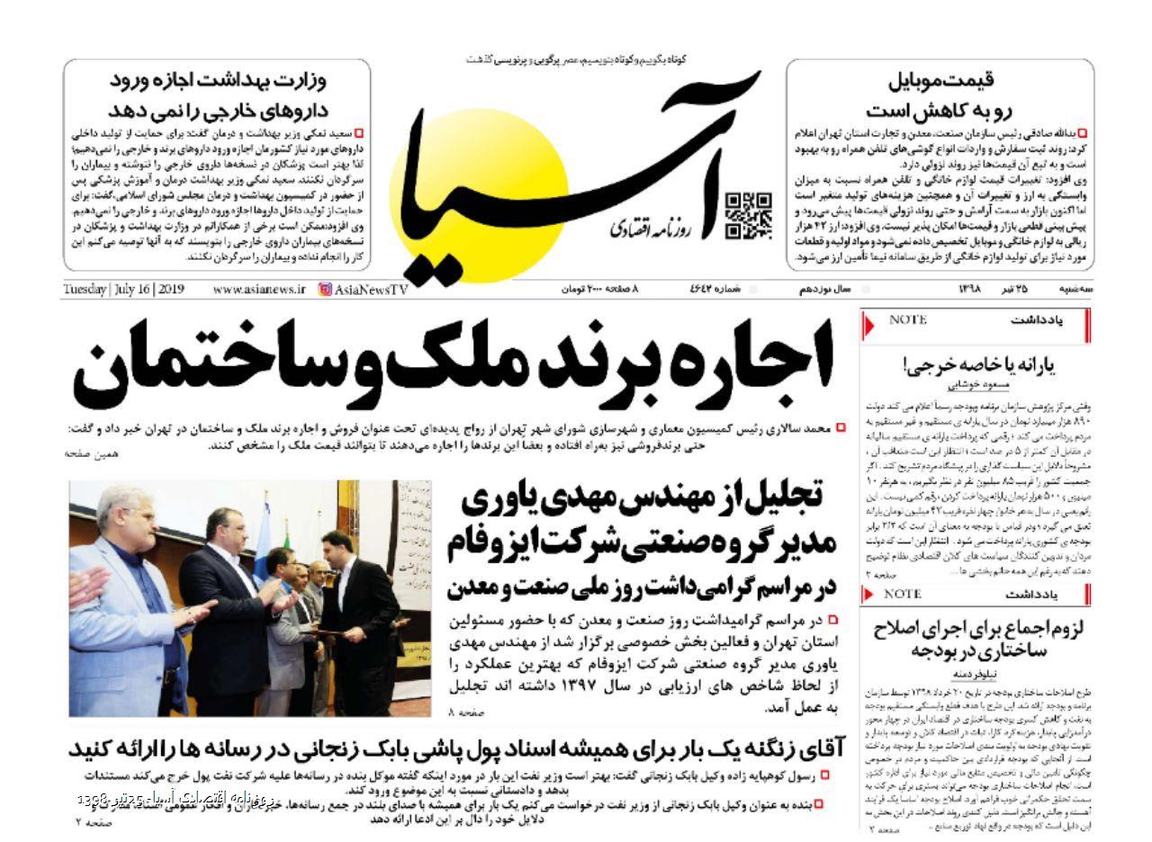 روزنامه اقتصادی آسیا- 25 تیر 1398 ۲۴ تیر ۱۳۹۸ https://www.asianewsiran.com/u/bv1 آسیانیوز ایران هیچگونه مسولیتی در قبال نظرات کاربران ندارد. میانگین امتیاز کاربران: 0.0 (0 رای) 12345 امتیاز 12345 برای امتیاز باید عدد وارد کنید ایمیل را وارد کنید ایمیل صحیح نیست ایمیل نمایش داده شود. تعداد کاراکتر باقیمانده: 1000 نظر خود را وارد کنید بازخوانی بازخوانی پس از انتشار این نظر، به من اطلاع داده شود. ارسال توجه : نظرات بیان شده در یادداشتهایی که منتشر میکنیم، بیانگر عقیده نگارنده آن است و لزوماً دیدگاه مدیران وبسایت آسیانیوز و آسیانیوز ایران نمیباشد. سردبیر
