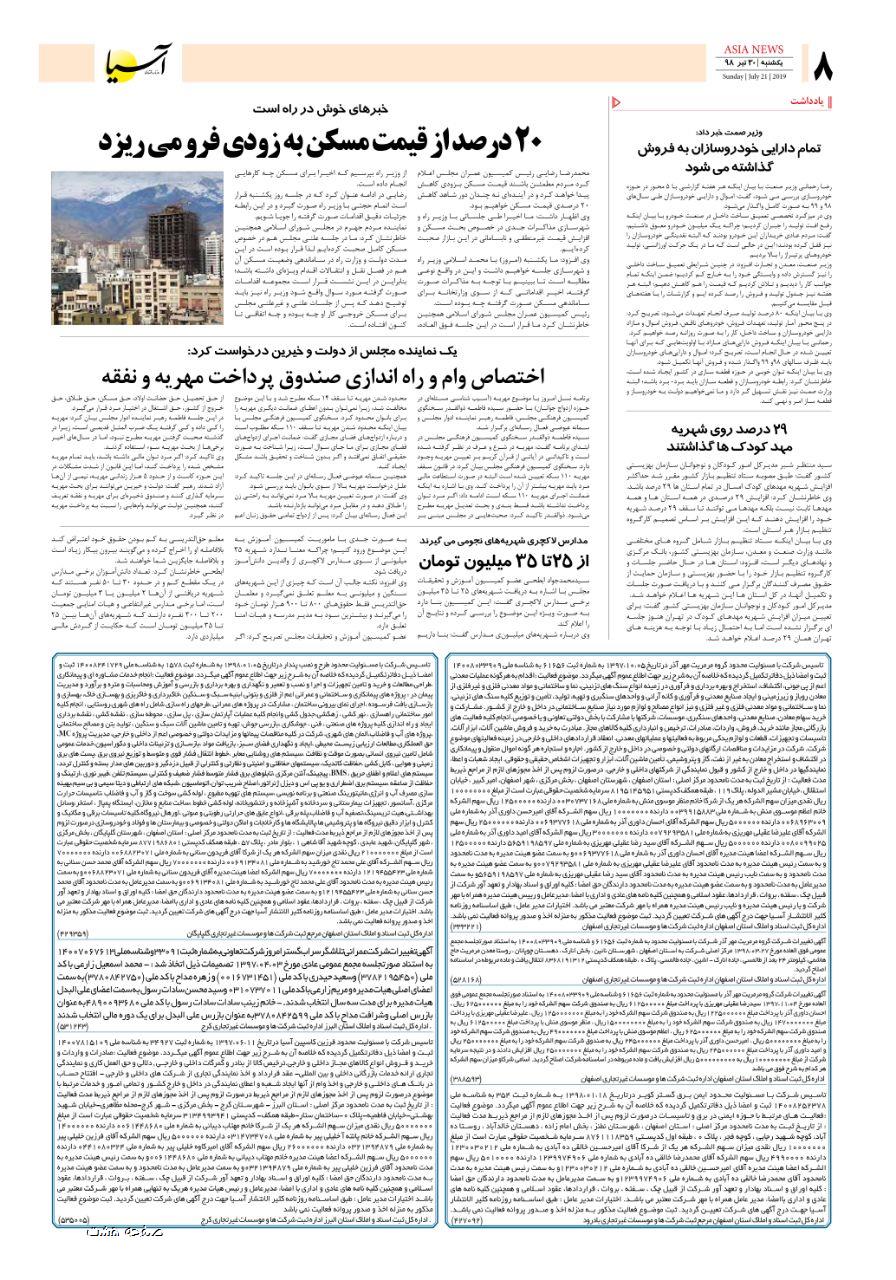 روزنامه اقتصادی آسیا- 30 تیر 1398 ۲۹ تیر ۱۳۹۸ https://www.asianewsiran.com/u/bso آسیانیوز ایران هیچگونه مسولیتی در قبال نظرات کاربران ندارد. میانگین امتیاز کاربران: 0.0 (0 رای) 12345 امتیاز 12345 برای امتیاز باید عدد وارد کنید ایمیل را وارد کنید ایمیل صحیح نیست ایمیل نمایش داده شود. تعداد کاراکتر باقیمانده: 1000 نظر خود را وارد کنید بازخوانی بازخوانی پس از انتشار این نظر، به من اطلاع داده شود. ارسال توجه : نظرات بیان شده در یادداشتهایی که منتشر میکنیم، بیانگر عقیده نگارنده آن است و لزوماً دیدگاه مدیران وبسایت آسیانیوز و آسیانیوز ایران نمیباشد. سردبیر
