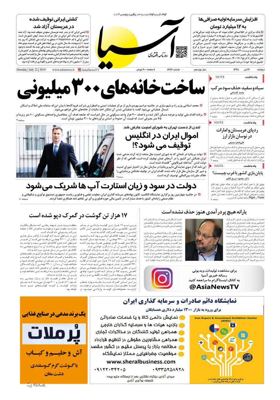 روزنامه اقتصادی آسیا- 31 تیر 1398 ۳۰ تیر ۱۳۹۸ https://www.asianewsiran.com/u/c8t آسیانیوز ایران هیچگونه مسولیتی در قبال نظرات کاربران ندارد. میانگین امتیاز کاربران: 0.0 (0 رای) 12345 امتیاز 12345 برای امتیاز باید عدد وارد کنید ایمیل را وارد کنید ایمیل صحیح نیست ایمیل نمایش داده شود. تعداد کاراکتر باقیمانده: 1000 نظر خود را وارد کنید بازخوانی بازخوانی پس از انتشار این نظر، به من اطلاع داده شود. ارسال توجه : نظرات بیان شده در یادداشتهایی که منتشر میکنیم، بیانگر عقیده نگارنده آن است و لزوماً دیدگاه مدیران وبسایت آسیانیوز و آسیانیوز ایران نمیباشد. سردبیر