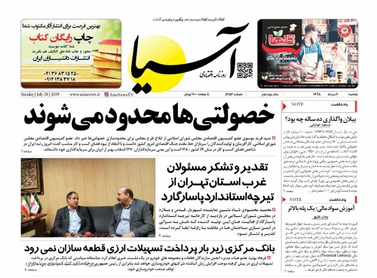 روزنامه اقتصادی آسیا- 06 مرداد 1398 ۵ اَمرداد ۱۳۹۸ https://www.asianewsiran.com/u/bw4 آسیانیوز ایران هیچگونه مسولیتی در قبال نظرات کاربران ندارد. میانگین امتیاز کاربران: 0.0 (0 رای) 12345 امتیاز 12345 برای امتیاز باید عدد وارد کنید ایمیل را وارد کنید ایمیل صحیح نیست ایمیل نمایش داده شود. تعداد کاراکتر باقیمانده: 1000 نظر خود را وارد کنید بازخوانی بازخوانی پس از انتشار این نظر، به من اطلاع داده شود. ارسال توجه : نظرات بیان شده در یادداشتهایی که منتشر میکنیم، بیانگر عقیده نگارنده آن است و لزوماً دیدگاه مدیران وبسایت آسیانیوز و آسیانیوز ایران نمیباشد. سردبیر