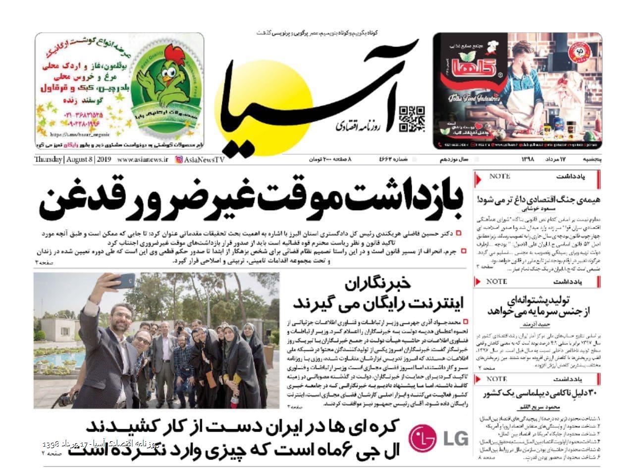 روزنامه اقتصادی آسیا- 17 مرداد 1398 ۱۶ اَمرداد ۱۳۹۸ https://www.asianewsiran.com/u/ceu آسیانیوز ایران هیچگونه مسولیتی در قبال نظرات کاربران ندارد. میانگین امتیاز کاربران: 0.0 (0 رای) 12345 امتیاز 12345 برای امتیاز باید عدد وارد کنید ایمیل را وارد کنید ایمیل صحیح نیست ایمیل نمایش داده شود. تعداد کاراکتر باقیمانده: 1000 نظر خود را وارد کنید بازخوانی بازخوانی پس از انتشار این نظر، به من اطلاع داده شود. ارسال توجه : نظرات بیان شده در یادداشتهایی که منتشر میکنیم، بیانگر عقیده نگارنده آن است و لزوماً دیدگاه مدیران وبسایت آسیانیوز و آسیانیوز ایران نمیباشد. سردبیر