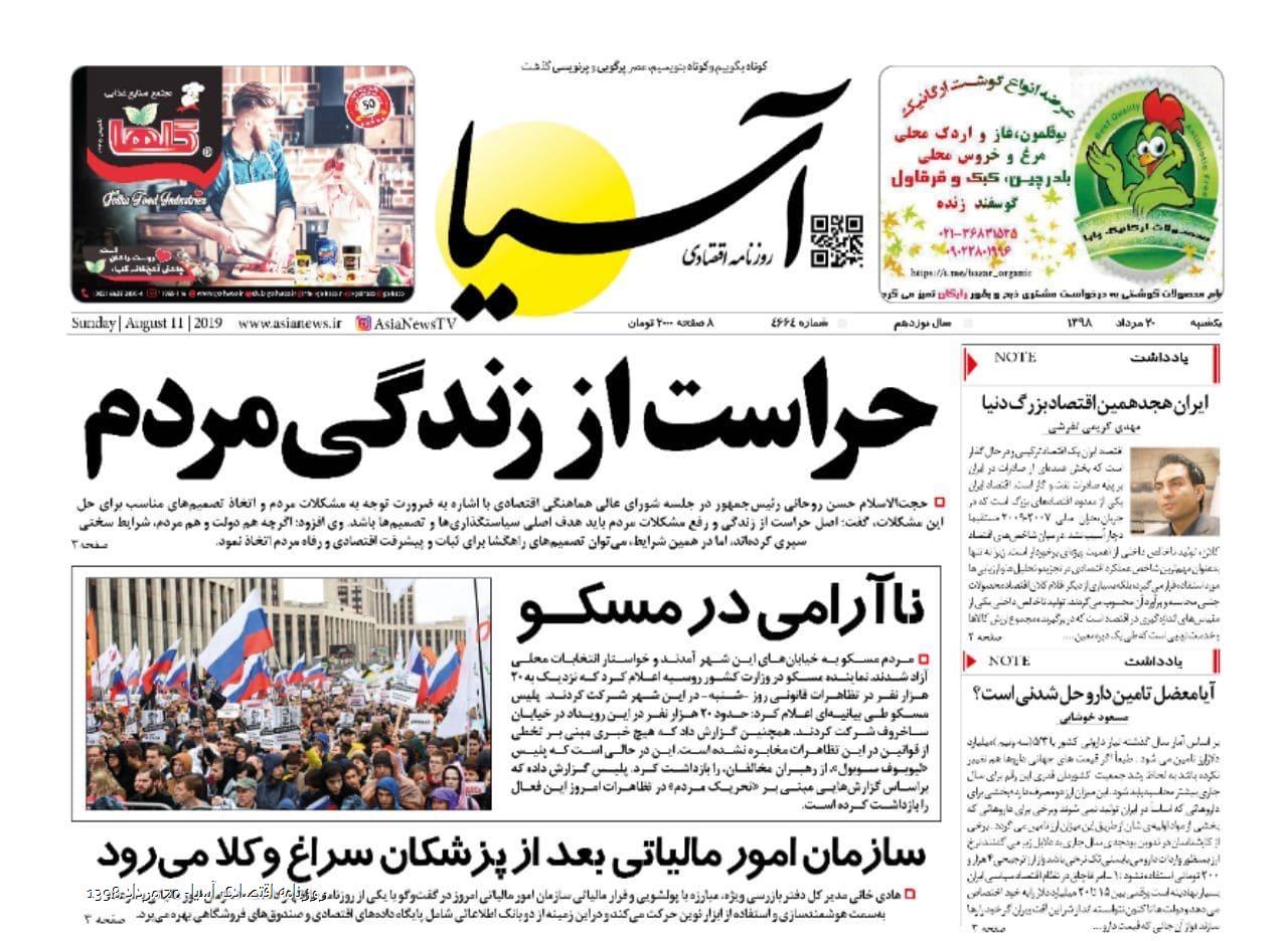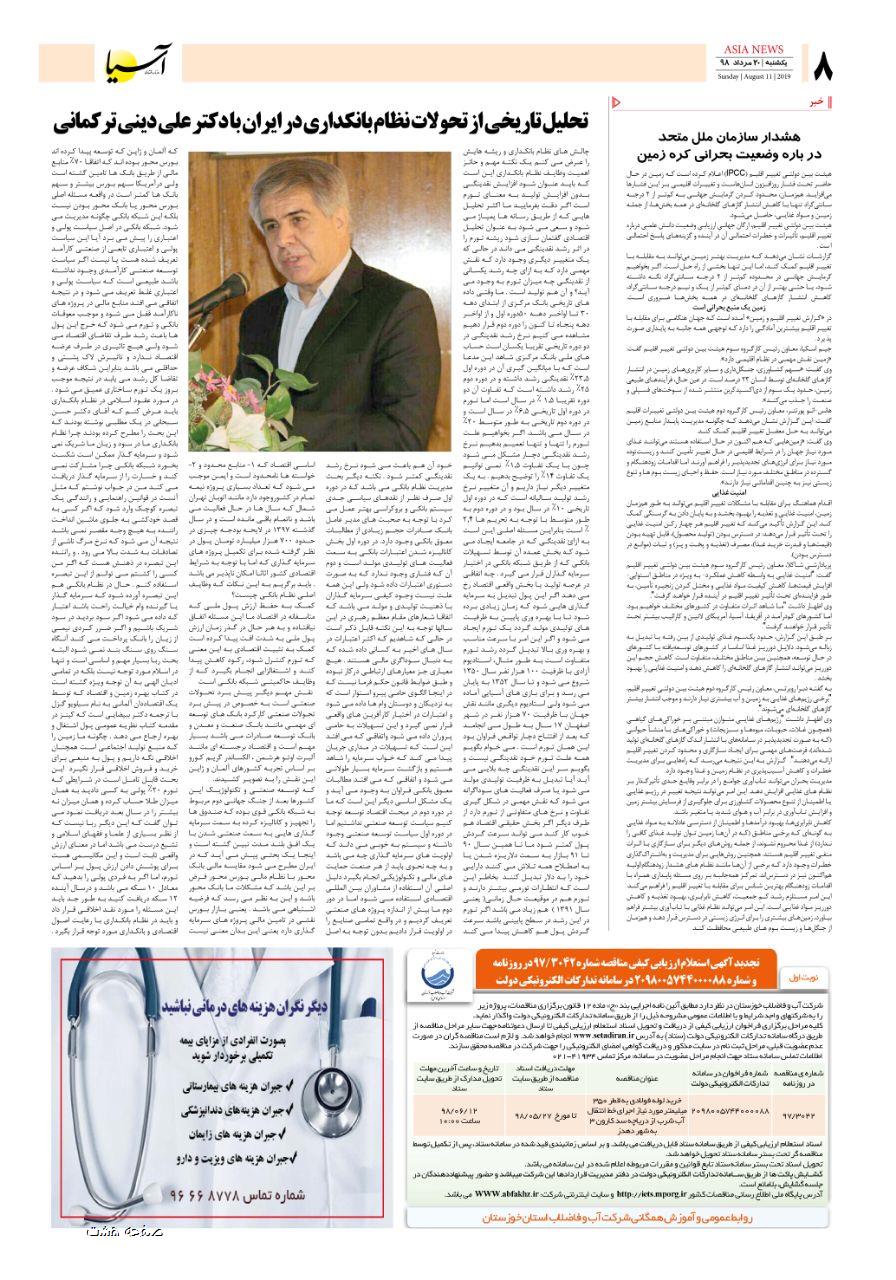 روزنامه اقتصادی آسیا- 20 مرداد 1398 ۱۹ اَمرداد ۱۳۹۸ https://www.asianewsiran.com/u/bs1 آسیانیوز ایران هیچگونه مسولیتی در قبال نظرات کاربران ندارد. میانگین امتیاز کاربران: 0.0 (0 رای) 12345 امتیاز 12345 برای امتیاز باید عدد وارد کنید ایمیل را وارد کنید ایمیل صحیح نیست ایمیل نمایش داده شود. تعداد کاراکتر باقیمانده: 1000 نظر خود را وارد کنید بازخوانی بازخوانی پس از انتشار این نظر، به من اطلاع داده شود. ارسال توجه : نظرات بیان شده در یادداشتهایی که منتشر میکنیم، بیانگر عقیده نگارنده آن است و لزوماً دیدگاه مدیران وبسایت آسیانیوز و آسیانیوز ایران نمیباشد. سردبیر