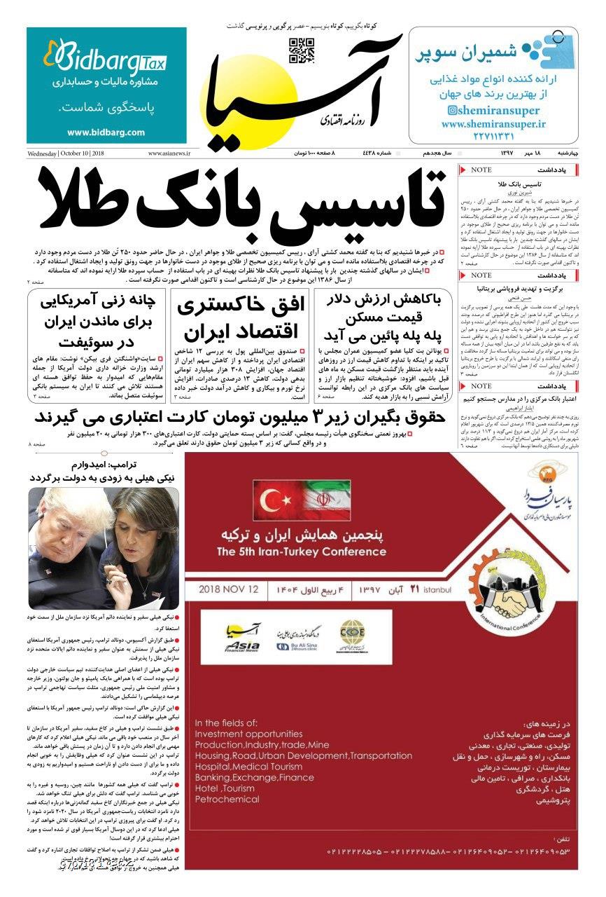 روزنامه اقتصادی آسیا - 18 مهر1397 ۱۸ مهر ۱۳۹۷ https://www.asianewsiran.com/u/c9g آسیانیوز ایران هیچگونه مسولیتی در قبال نظرات کاربران ندارد. میانگین امتیاز کاربران: 0.0 (0 رای) 12345 امتیاز 12345 برای امتیاز باید عدد وارد کنید ایمیل را وارد کنید ایمیل صحیح نیست ایمیل نمایش داده شود. تعداد کاراکتر باقیمانده: 1000 نظر خود را وارد کنید بازخوانی بازخوانی پس از انتشار این نظر، به من اطلاع داده شود. ارسال توجه : نظرات بیان شده در یادداشتهایی که منتشر میکنیم، بیانگر عقیده نگارنده آن است و لزوماً دیدگاه مدیران وبسایت آسیانیوز و آسیانیوز ایران نمیباشد. سردبیر