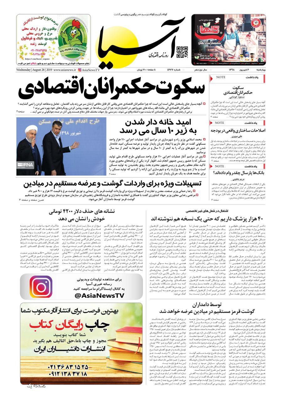 روزنامه اقتصادی آسیا- 06 شهریور 1398 ۵ شهریور ۱۳۹۸ https://www.asianewsiran.com/u/cf8 آسیانیوز ایران هیچگونه مسولیتی در قبال نظرات کاربران ندارد. میانگین امتیاز کاربران: 0.0 (0 رای) 12345 امتیاز 12345 برای امتیاز باید عدد وارد کنید ایمیل را وارد کنید ایمیل صحیح نیست ایمیل نمایش داده شود. تعداد کاراکتر باقیمانده: 1000 نظر خود را وارد کنید بازخوانی بازخوانی پس از انتشار این نظر، به من اطلاع داده شود. ارسال توجه : نظرات بیان شده در یادداشتهایی که منتشر میکنیم، بیانگر عقیده نگارنده آن است و لزوماً دیدگاه مدیران وبسایت آسیانیوز و آسیانیوز ایران نمیباشد. سردبیر