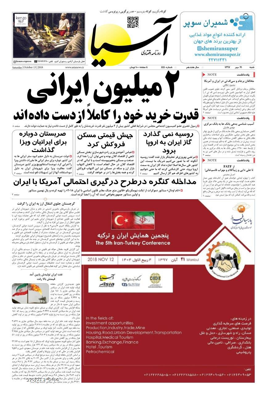 روزنامه اقتصادی آسیا - 21 مهر1397 ۲۱ مهر ۱۳۹۷ https://www.asianewsiran.com/u/cg6 آسیانیوز ایران هیچگونه مسولیتی در قبال نظرات کاربران ندارد. میانگین امتیاز کاربران: 0.0 (0 رای) 12345 امتیاز 12345 برای امتیاز باید عدد وارد کنید ایمیل را وارد کنید ایمیل صحیح نیست ایمیل نمایش داده شود. تعداد کاراکتر باقیمانده: 1000 نظر خود را وارد کنید بازخوانی بازخوانی پس از انتشار این نظر، به من اطلاع داده شود. ارسال توجه : نظرات بیان شده در یادداشتهایی که منتشر میکنیم، بیانگر عقیده نگارنده آن است و لزوماً دیدگاه مدیران وبسایت آسیانیوز و آسیانیوز ایران نمیباشد. سردبیر
