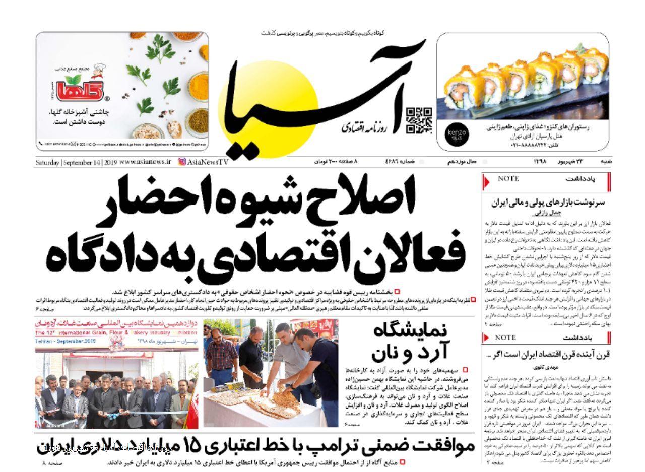 روزنامه اقتصادی آسیا- 23 شهریور 1398