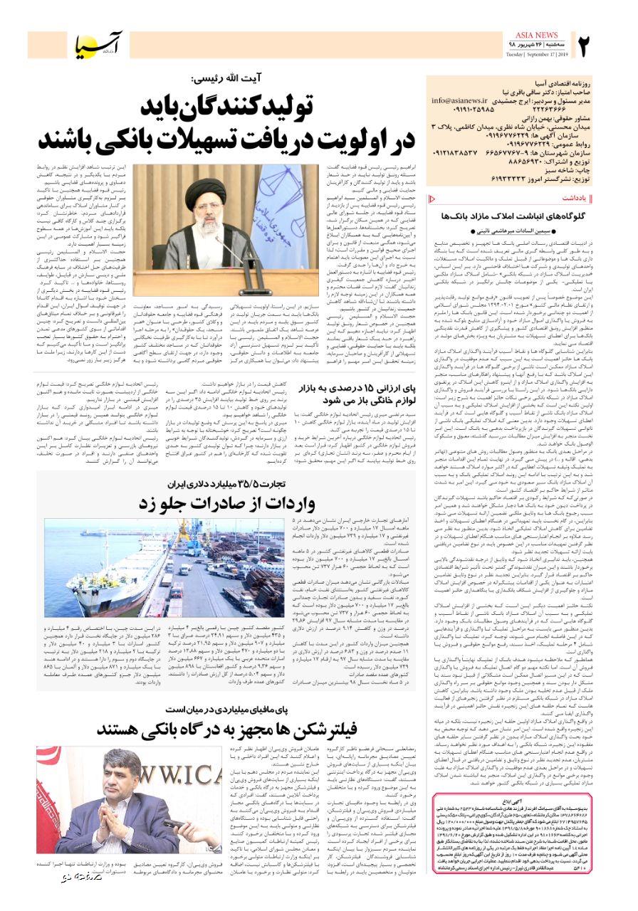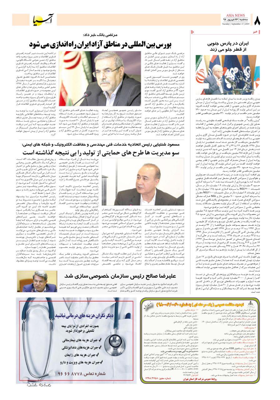 روزنامه اقتصادی آسیا- 26 شهریور 1398