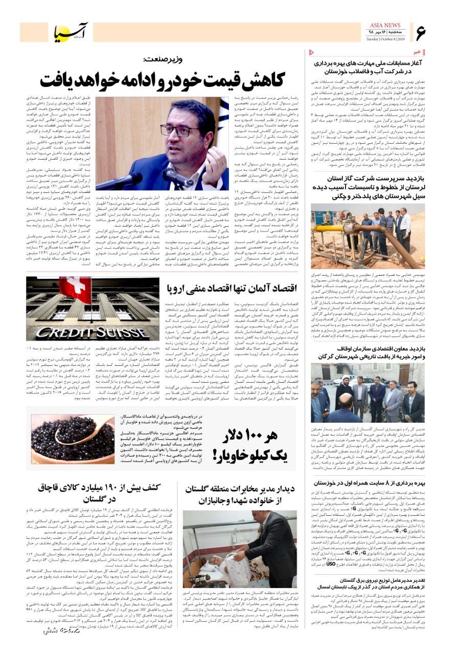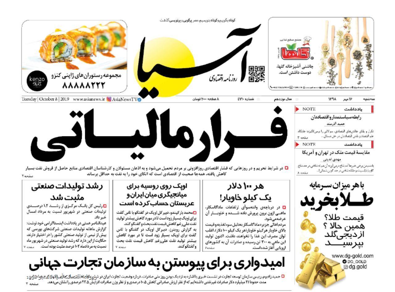 روزنامه اقتصادی آسیا- 16 مهر 1398 ۱۵ مهر ۱۳۹۸ https://www.asianewsiran.com/u/c70 آسیانیوز ایران هیچگونه مسولیتی در قبال نظرات کاربران ندارد. میانگین امتیاز کاربران: 0.0 (0 رای) 12345 امتیاز 12345 برای امتیاز باید عدد وارد کنید ایمیل را وارد کنید ایمیل صحیح نیست ایمیل نمایش داده شود. تعداد کاراکتر باقیمانده: 1000 نظر خود را وارد کنید بازخوانی بازخوانی پس از انتشار این نظر، به من اطلاع داده شود. ارسال توجه : نظرات بیان شده در یادداشتهایی که منتشر میکنیم، بیانگر عقیده نگارنده آن است و لزوماً دیدگاه مدیران وبسایت آسیانیوز و آسیانیوز ایران نمیباشد. سردبیر