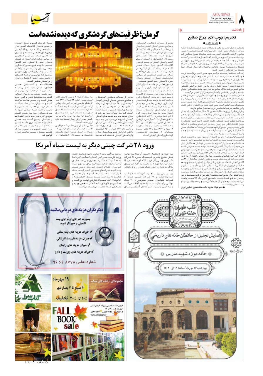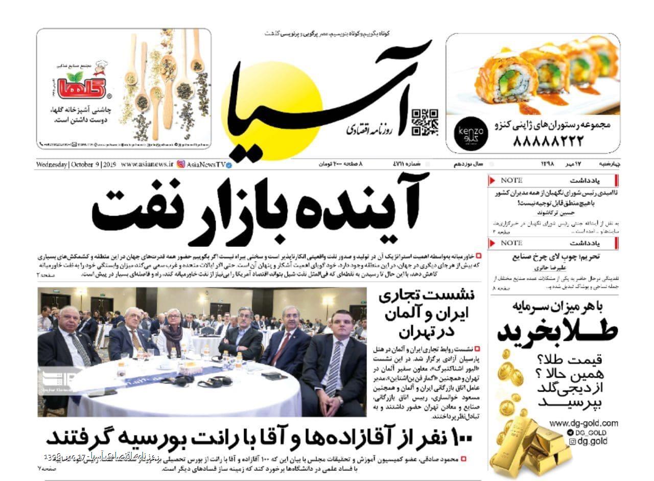 روزنامه اقتصادی آسیا- 17 مهر 1398 ۱۷ مهر ۱۳۹۸ https://www.asianewsiran.com/u/c80 آسیانیوز ایران هیچگونه مسولیتی در قبال نظرات کاربران ندارد. میانگین امتیاز کاربران: 0.0 (0 رای) 12345 امتیاز 12345 برای امتیاز باید عدد وارد کنید ایمیل را وارد کنید ایمیل صحیح نیست ایمیل نمایش داده شود. تعداد کاراکتر باقیمانده: 1000 نظر خود را وارد کنید بازخوانی بازخوانی پس از انتشار این نظر، به من اطلاع داده شود. ارسال توجه : نظرات بیان شده در یادداشتهایی که منتشر میکنیم، بیانگر عقیده نگارنده آن است و لزوماً دیدگاه مدیران وبسایت آسیانیوز و آسیانیوز ایران نمیباشد. سردبیر