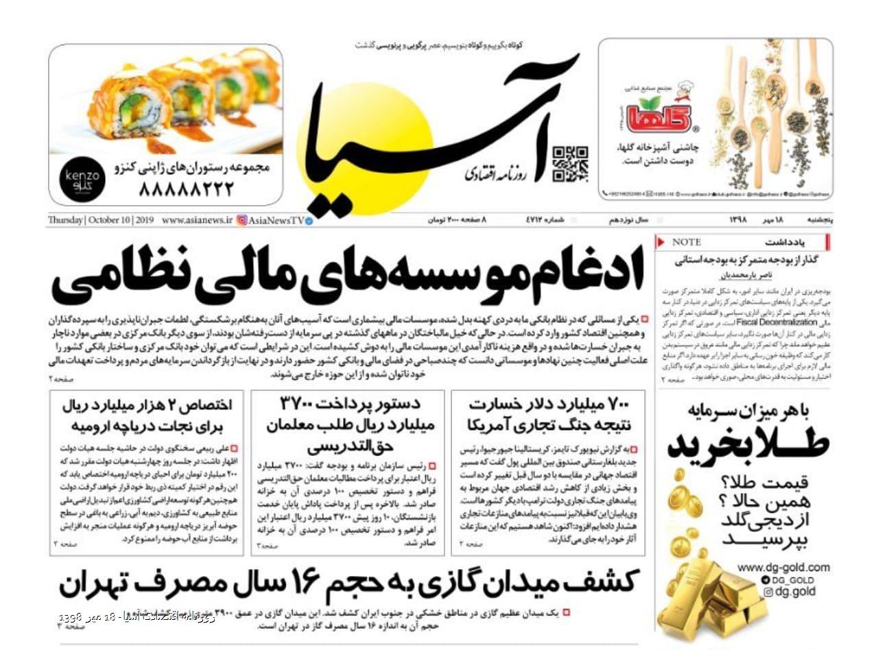 روزنامه اقتصادی آسیا- 18 مهر 1398 ۱۷ مهر ۱۳۹۸ https://www.asianewsiran.com/u/cly آسیانیوز ایران هیچگونه مسولیتی در قبال نظرات کاربران ندارد. میانگین امتیاز کاربران: 0.0 (0 رای) 12345 امتیاز 12345 برای امتیاز باید عدد وارد کنید ایمیل را وارد کنید ایمیل صحیح نیست ایمیل نمایش داده شود. تعداد کاراکتر باقیمانده: 1000 نظر خود را وارد کنید بازخوانی بازخوانی پس از انتشار این نظر، به من اطلاع داده شود. ارسال توجه : نظرات بیان شده در یادداشتهایی که منتشر میکنیم، بیانگر عقیده نگارنده آن است و لزوماً دیدگاه مدیران وبسایت آسیانیوز و آسیانیوز ایران نمیباشد. سردبیر