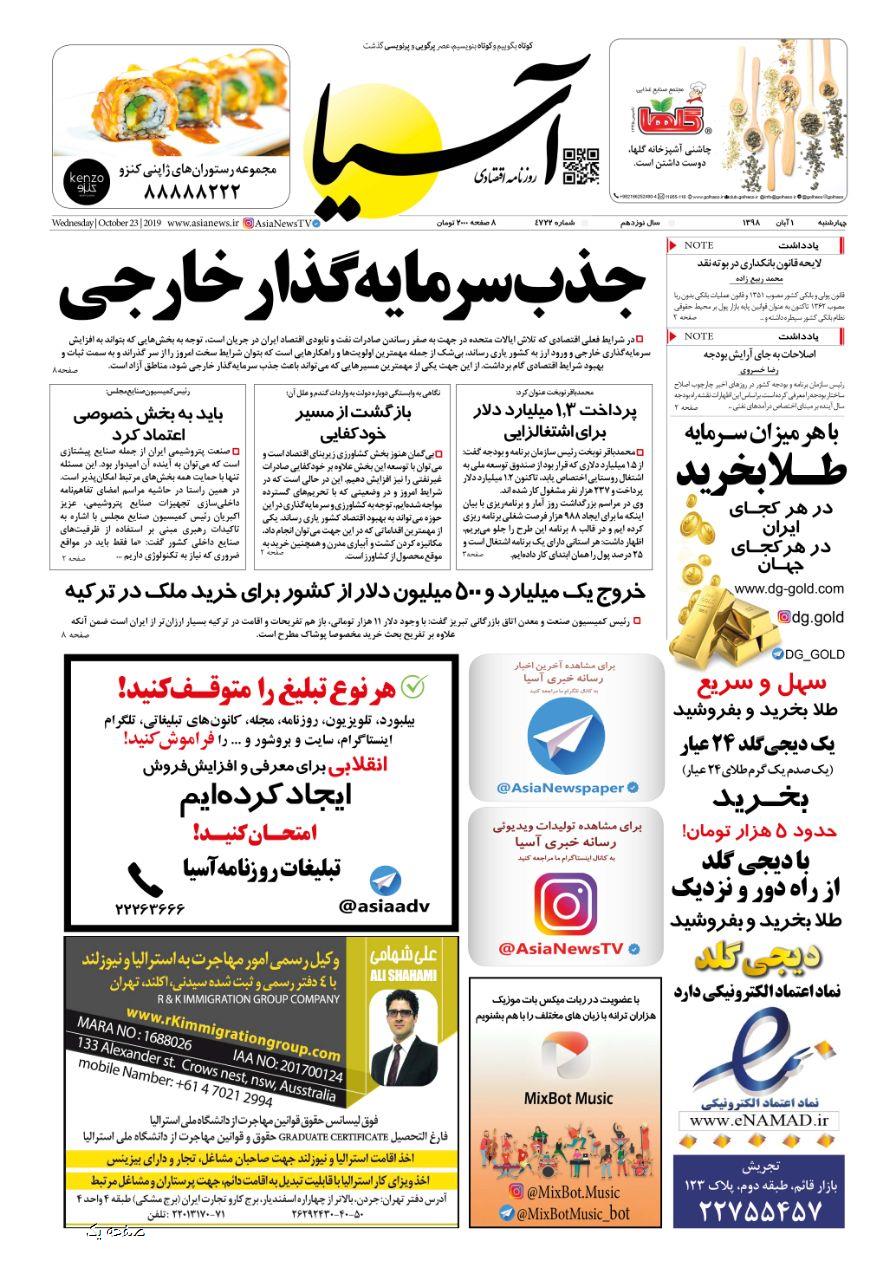 روزنامه اقتصادی آسیا- 01 آبان 1398 ۱ آبان ۱۳۹۸ https://www.asianewsiran.com/u/bz3 آسیانیوز ایران هیچگونه مسولیتی در قبال نظرات کاربران ندارد. میانگین امتیاز کاربران: 0.0 (0 رای) 12345 امتیاز 12345 برای امتیاز باید عدد وارد کنید ایمیل را وارد کنید ایمیل صحیح نیست ایمیل نمایش داده شود. تعداد کاراکتر باقیمانده: 1000 نظر خود را وارد کنید بازخوانی بازخوانی پس از انتشار این نظر، به من اطلاع داده شود. ارسال توجه : نظرات بیان شده در یادداشتهایی که منتشر میکنیم، بیانگر عقیده نگارنده آن است و لزوماً دیدگاه مدیران وبسایت آسیانیوز و آسیانیوز ایران نمیباشد. سردبیر