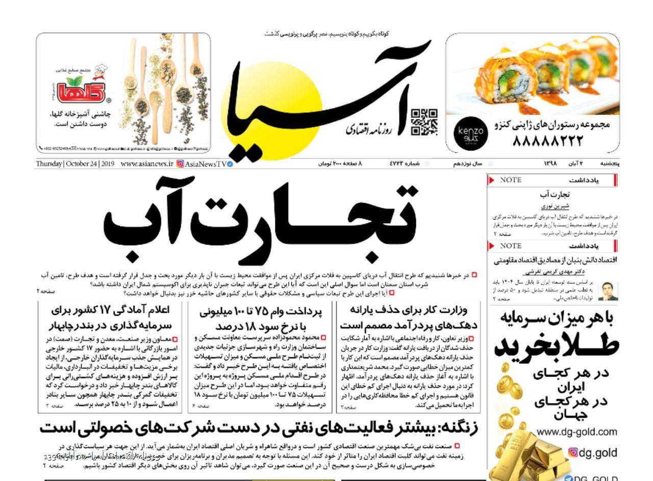 روزنامه اقتصادی آسیا- 02 آبان 1398