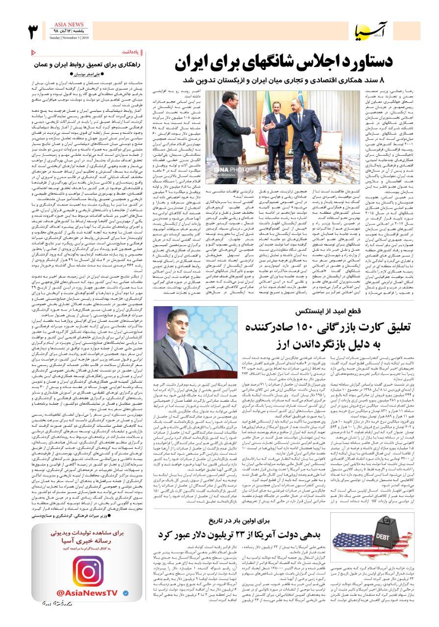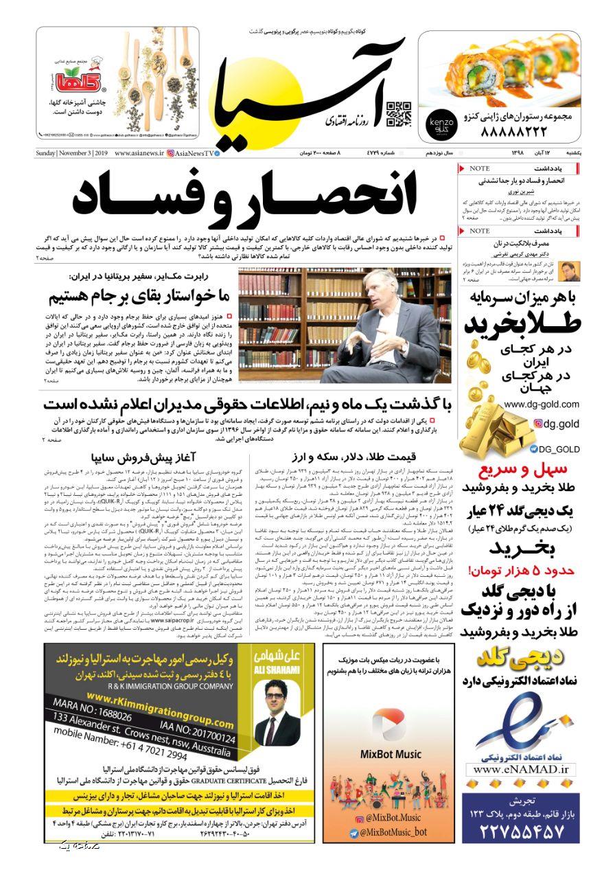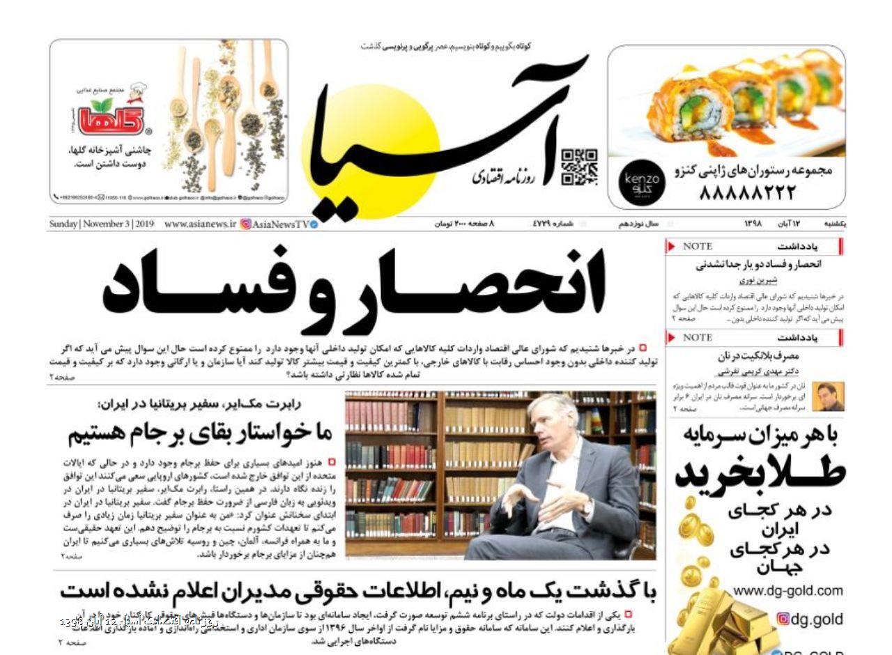 روزنامه اقتصادی آسیا- 12 آبان 1398 ۱۱ آبان ۱۳۹۸ https://www.asianewsiran.com/u/bqd آسیانیوز ایران هیچگونه مسولیتی در قبال نظرات کاربران ندارد. میانگین امتیاز کاربران: 0.0 (0 رای) 12345 امتیاز 12345 برای امتیاز باید عدد وارد کنید ایمیل را وارد کنید ایمیل صحیح نیست ایمیل نمایش داده شود. تعداد کاراکتر باقیمانده: 1000 نظر خود را وارد کنید بازخوانی بازخوانی پس از انتشار این نظر، به من اطلاع داده شود. ارسال توجه : نظرات بیان شده در یادداشتهایی که منتشر میکنیم، بیانگر عقیده نگارنده آن است و لزوماً دیدگاه مدیران وبسایت آسیانیوز و آسیانیوز ایران نمیباشد. سردبیر