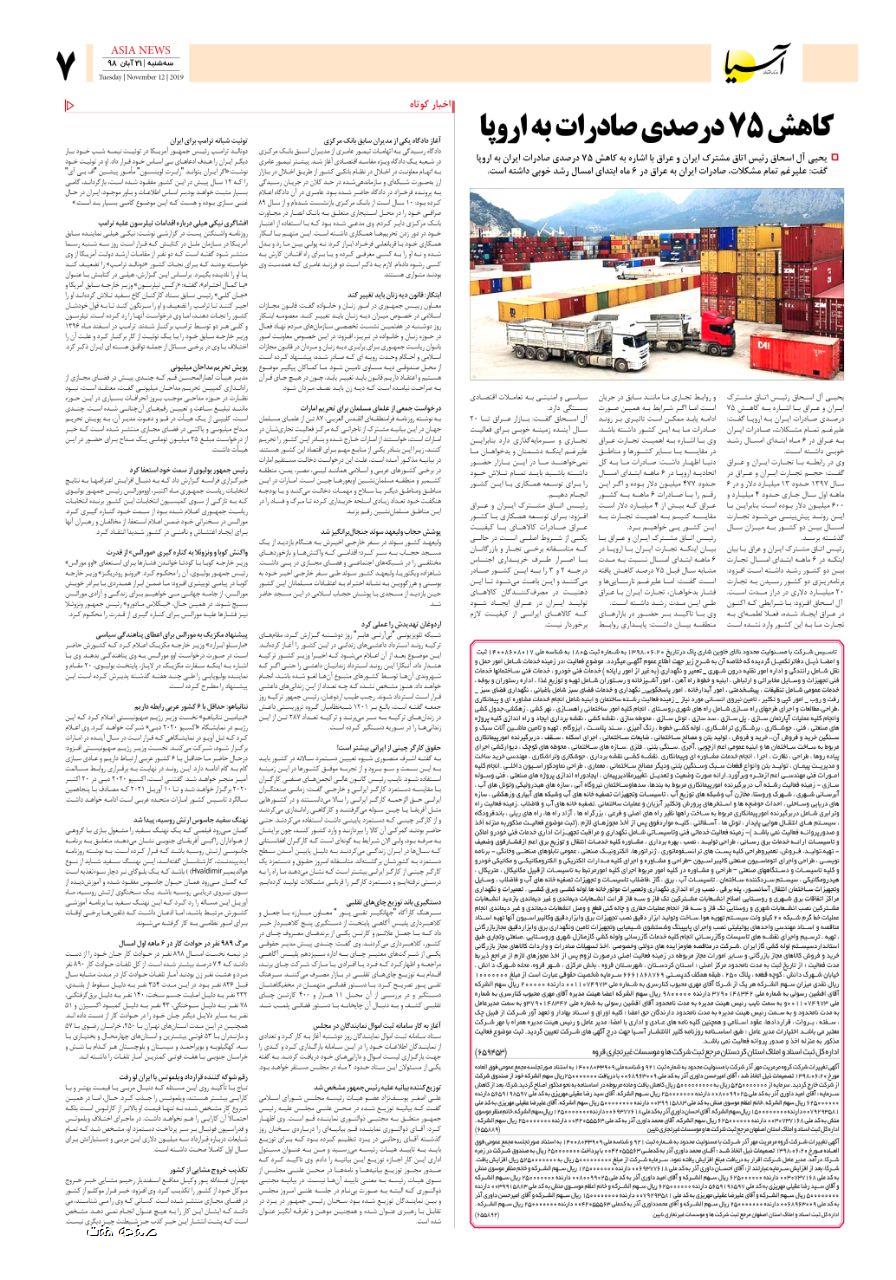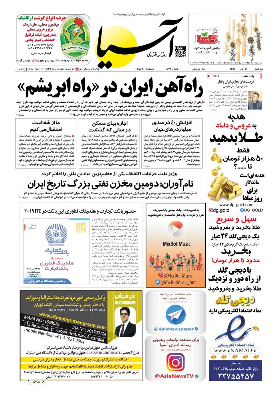 روزنامه اقتصادی آسیا- 21 آبان 1398 ۲۰ آبان ۱۳۹۸ https://www.asianewsiran.com/u/bsz آسیانیوز ایران هیچگونه مسولیتی در قبال نظرات کاربران ندارد. میانگین امتیاز کاربران: 0.0 (0 رای) 12345 امتیاز 12345 برای امتیاز باید عدد وارد کنید ایمیل را وارد کنید ایمیل صحیح نیست ایمیل نمایش داده شود. تعداد کاراکتر باقیمانده: 1000 نظر خود را وارد کنید بازخوانی بازخوانی پس از انتشار این نظر، به من اطلاع داده شود. ارسال توجه : نظرات بیان شده در یادداشتهایی که منتشر میکنیم، بیانگر عقیده نگارنده آن است و لزوماً دیدگاه مدیران وبسایت آسیانیوز و آسیانیوز ایران نمیباشد. سردبیر