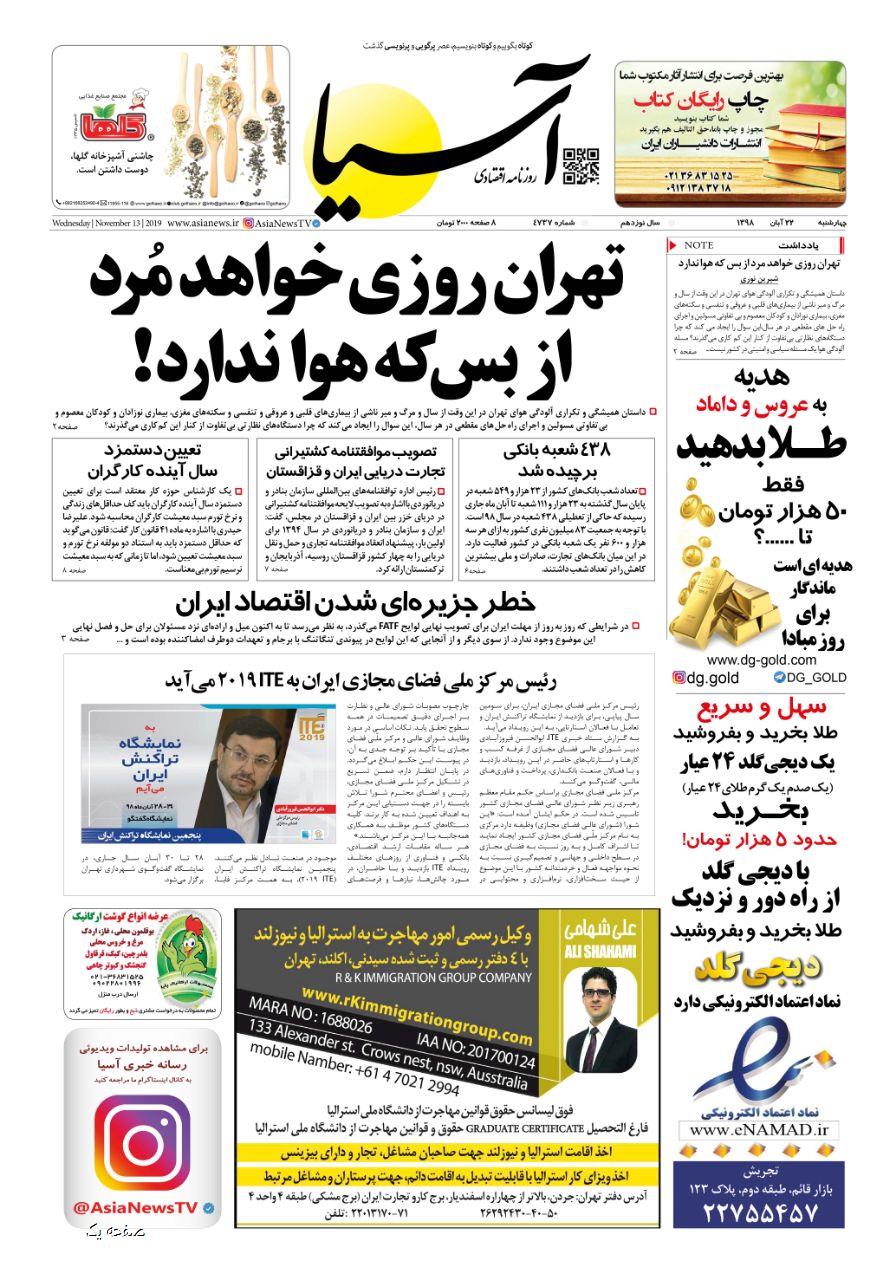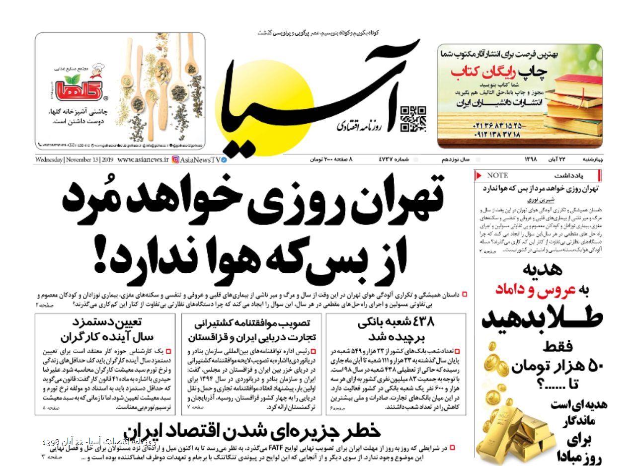 روزنامه اقتصادی آسیا- 22 آبان 1398