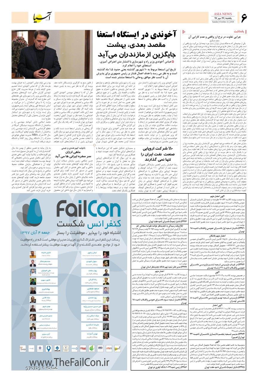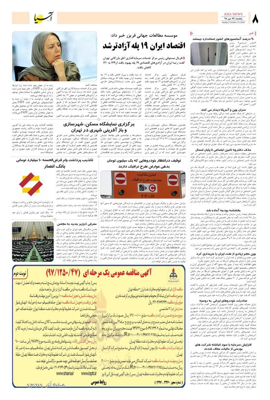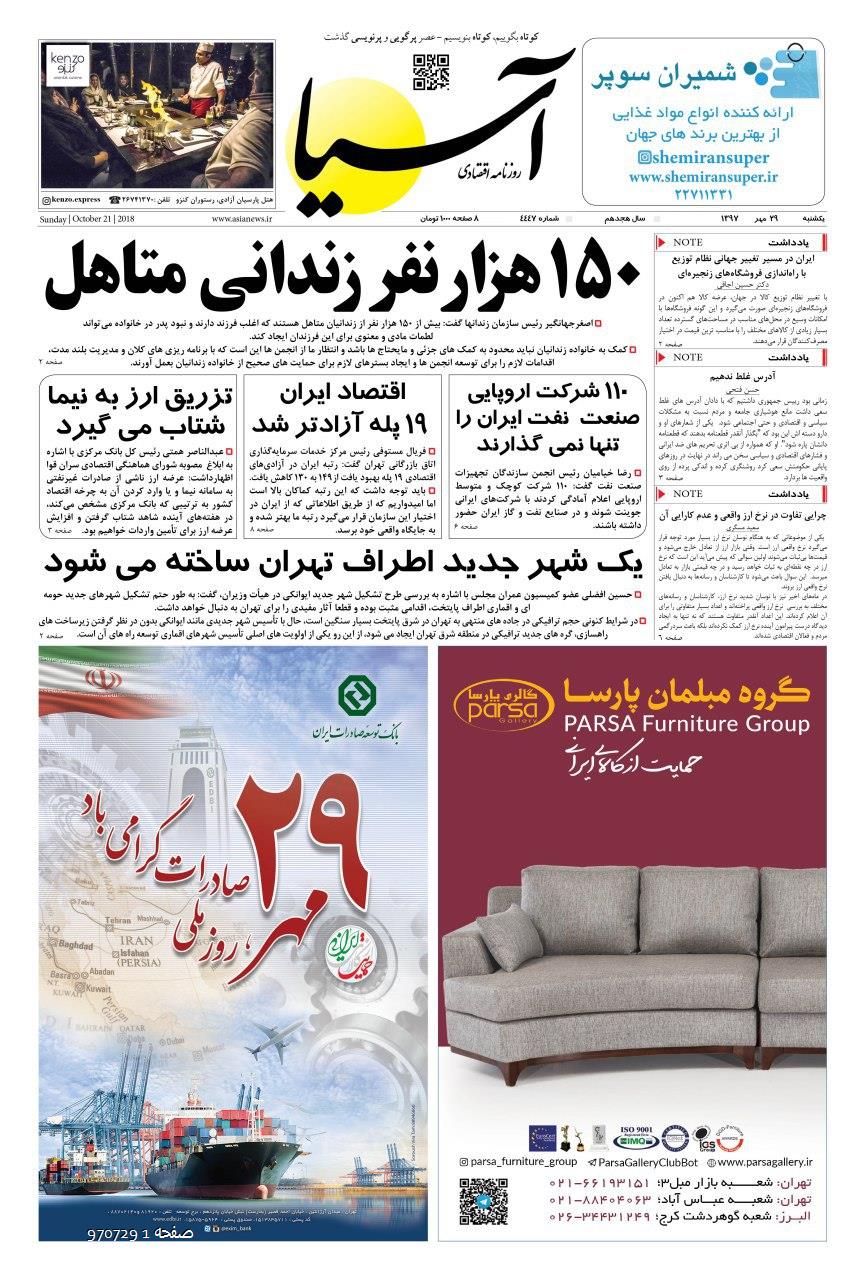 روزنامه اقتصادی آسیا - 29 مهر1397