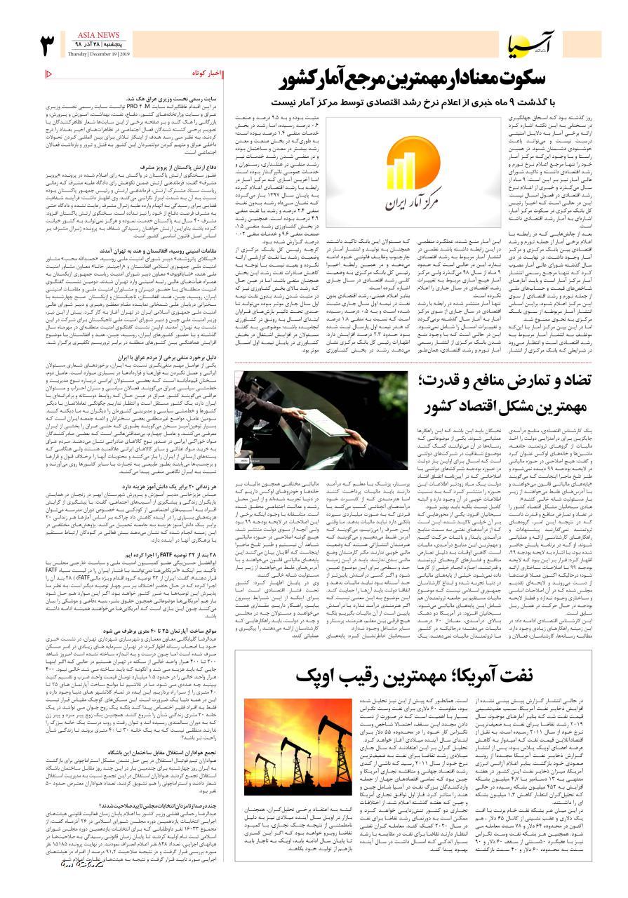 روزنامه اقتصادی آسیا- 28 آذر 1398