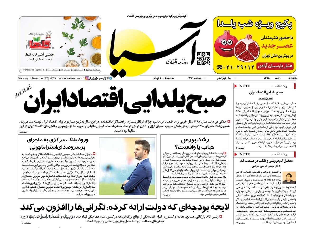 روزنامه اقتصادی آسیا- 01 دی 1398 ۳۰ آذر ۱۳۹۸ https://www.asianewsiran.com/u/bov آسیانیوز ایران هیچگونه مسولیتی در قبال نظرات کاربران ندارد. میانگین امتیاز کاربران: 0.0 (0 رای) 12345 امتیاز 12345 برای امتیاز باید عدد وارد کنید ایمیل را وارد کنید ایمیل صحیح نیست ایمیل نمایش داده شود. تعداد کاراکتر باقیمانده: 1000 نظر خود را وارد کنید بازخوانی بازخوانی پس از انتشار این نظر، به من اطلاع داده شود. ارسال توجه : نظرات بیان شده در یادداشتهایی که منتشر میکنیم، بیانگر عقیده نگارنده آن است و لزوماً دیدگاه مدیران وبسایت آسیانیوز و آسیانیوز ایران نمیباشد. سردبیر
