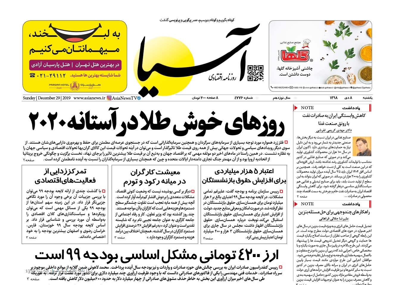 روزنامه اقتصادی آسیا- 08 دی 1398 ۷ دی ۱۳۹۸ https://www.asianewsiran.com/u/bs7 آسیانیوز ایران هیچگونه مسولیتی در قبال نظرات کاربران ندارد. میانگین امتیاز کاربران: 0.0 (0 رای) 12345 امتیاز 12345 برای امتیاز باید عدد وارد کنید ایمیل را وارد کنید ایمیل صحیح نیست ایمیل نمایش داده شود. تعداد کاراکتر باقیمانده: 1000 نظر خود را وارد کنید بازخوانی بازخوانی پس از انتشار این نظر، به من اطلاع داده شود. ارسال توجه : نظرات بیان شده در یادداشتهایی که منتشر میکنیم، بیانگر عقیده نگارنده آن است و لزوماً دیدگاه مدیران وبسایت آسیانیوز و آسیانیوز ایران نمیباشد. سردبیر