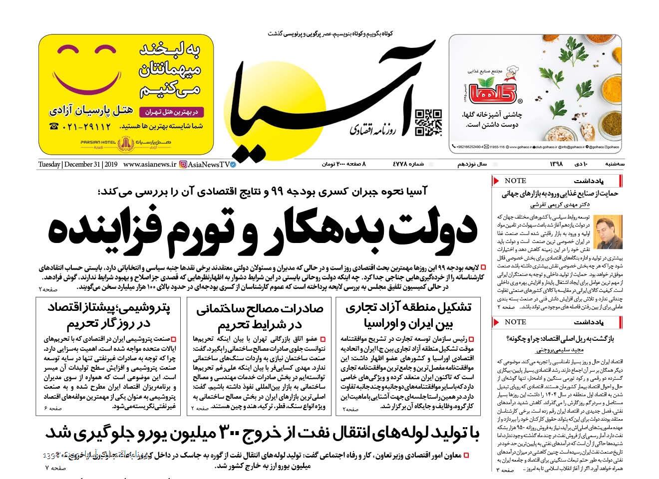 روزنامه اقتصادی آسیا- 10 دی 1398