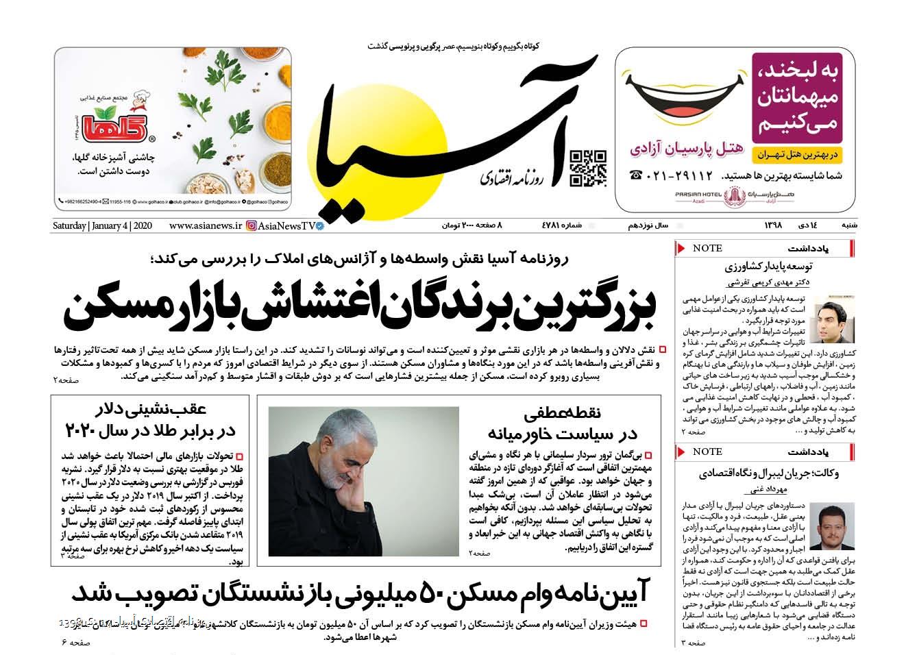 روزنامه اقتصادی آسیا- 14 دی 1398 ۱۳ دی ۱۳۹۸ https://www.asianewsiran.com/u/cbx آسیانیوز ایران هیچگونه مسولیتی در قبال نظرات کاربران ندارد. میانگین امتیاز کاربران: 0.0 (0 رای) 12345 امتیاز 12345 برای امتیاز باید عدد وارد کنید ایمیل را وارد کنید ایمیل صحیح نیست ایمیل نمایش داده شود. تعداد کاراکتر باقیمانده: 1000 نظر خود را وارد کنید بازخوانی بازخوانی پس از انتشار این نظر، به من اطلاع داده شود. ارسال توجه : نظرات بیان شده در یادداشتهایی که منتشر میکنیم، بیانگر عقیده نگارنده آن است و لزوماً دیدگاه مدیران وبسایت آسیانیوز و آسیانیوز ایران نمیباشد. سردبیر