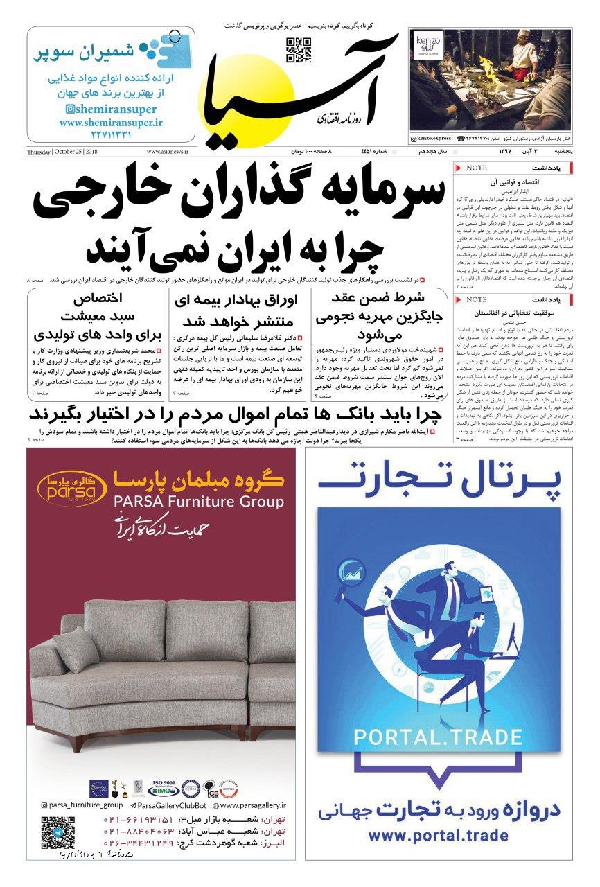 روزنامه اقتصادی آسیا - 03 آبان 1397 ۳ آبان ۱۳۹۷ https://www.asianewsiran.com/u/bqh آسیانیوز ایران هیچگونه مسولیتی در قبال نظرات کاربران ندارد. میانگین امتیاز کاربران: 0.0 (0 رای) 12345 امتیاز 12345 برای امتیاز باید عدد وارد کنید ایمیل را وارد کنید ایمیل صحیح نیست ایمیل نمایش داده شود. تعداد کاراکتر باقیمانده: 1000 نظر خود را وارد کنید بازخوانی بازخوانی پس از انتشار این نظر، به من اطلاع داده شود. ارسال توجه : نظرات بیان شده در یادداشتهایی که منتشر میکنیم، بیانگر عقیده نگارنده آن است و لزوماً دیدگاه مدیران وبسایت آسیانیوز و آسیانیوز ایران نمیباشد. سردبیر