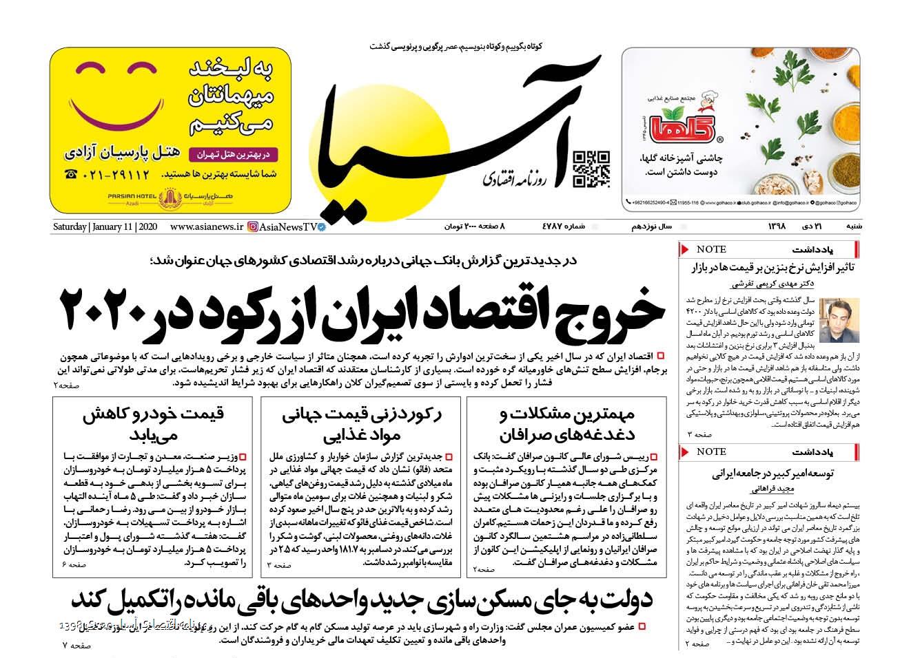 روزنامه اقتصادی آسیا- 21 دی 1398 ۲۰ دی ۱۳۹۸ https://www.asianewsiran.com/u/ci1 آسیانیوز ایران هیچگونه مسولیتی در قبال نظرات کاربران ندارد. میانگین امتیاز کاربران: 0.0 (0 رای) 12345 امتیاز 12345 برای امتیاز باید عدد وارد کنید ایمیل را وارد کنید ایمیل صحیح نیست ایمیل نمایش داده شود. تعداد کاراکتر باقیمانده: 1000 نظر خود را وارد کنید بازخوانی بازخوانی پس از انتشار این نظر، به من اطلاع داده شود. ارسال توجه : نظرات بیان شده در یادداشتهایی که منتشر میکنیم، بیانگر عقیده نگارنده آن است و لزوماً دیدگاه مدیران وبسایت آسیانیوز و آسیانیوز ایران نمیباشد. سردبیر