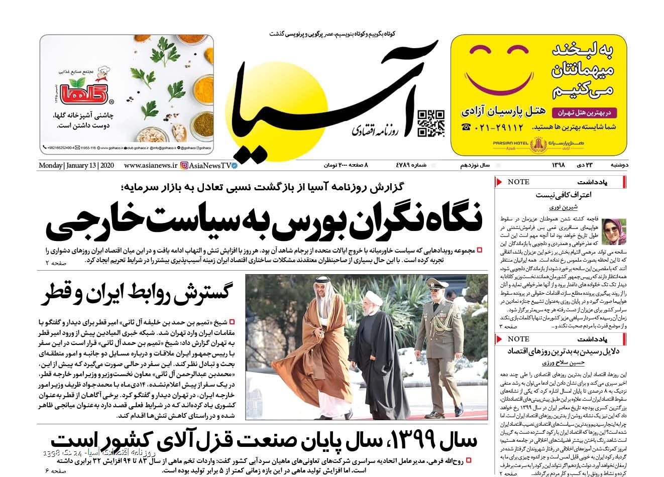 روزنامه اقتصادی آسیا- 23 دی 1398 ۲۳ دی ۱۳۹۸ https://www.asianewsiran.com/u/c36 آسیانیوز ایران هیچگونه مسولیتی در قبال نظرات کاربران ندارد. میانگین امتیاز کاربران: 0.0 (0 رای) 12345 امتیاز 12345 برای امتیاز باید عدد وارد کنید ایمیل را وارد کنید ایمیل صحیح نیست ایمیل نمایش داده شود. تعداد کاراکتر باقیمانده: 1000 نظر خود را وارد کنید بازخوانی بازخوانی پس از انتشار این نظر، به من اطلاع داده شود. ارسال توجه : نظرات بیان شده در یادداشتهایی که منتشر میکنیم، بیانگر عقیده نگارنده آن است و لزوماً دیدگاه مدیران وبسایت آسیانیوز و آسیانیوز ایران نمیباشد. سردبیر