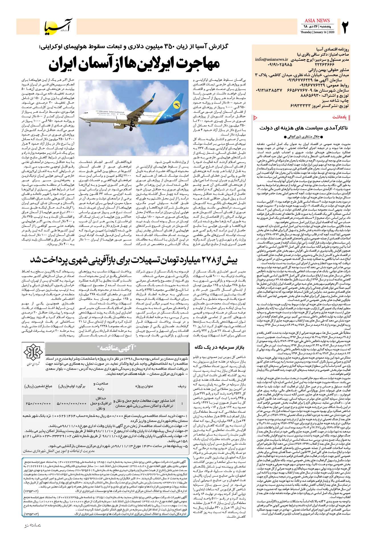 روزنامه اقتصادی آسیا- 26 دی 1398 ۲۵ دی ۱۳۹۸ https://www.asianewsiran.com/u/ce5 آسیانیوز ایران هیچگونه مسولیتی در قبال نظرات کاربران ندارد. میانگین امتیاز کاربران: 0.0 (0 رای) 12345 امتیاز 12345 برای امتیاز باید عدد وارد کنید ایمیل را وارد کنید ایمیل صحیح نیست ایمیل نمایش داده شود. تعداد کاراکتر باقیمانده: 1000 نظر خود را وارد کنید بازخوانی بازخوانی پس از انتشار این نظر، به من اطلاع داده شود. ارسال توجه : نظرات بیان شده در یادداشتهایی که منتشر میکنیم، بیانگر عقیده نگارنده آن است و لزوماً دیدگاه مدیران وبسایت آسیانیوز و آسیانیوز ایران نمیباشد. سردبیر